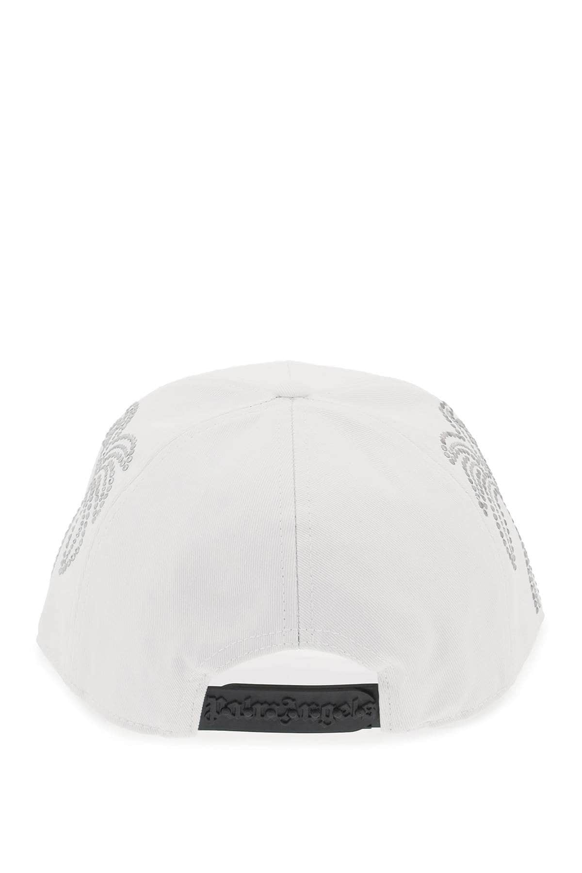 Cotton twill baseball cap by Palm Angels decorated with Monogram and palms crafted in silver micro stiuds. Adjustable strap at back, lined. One size fits all.