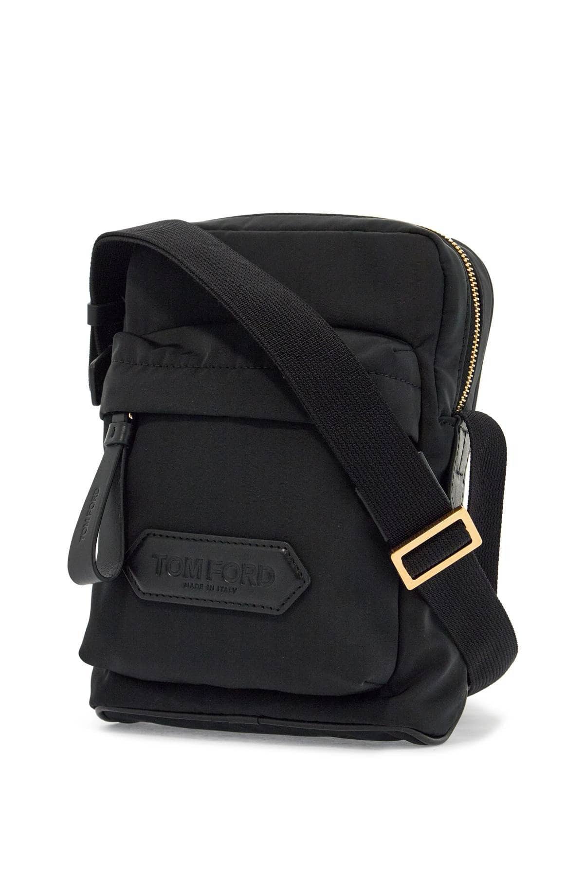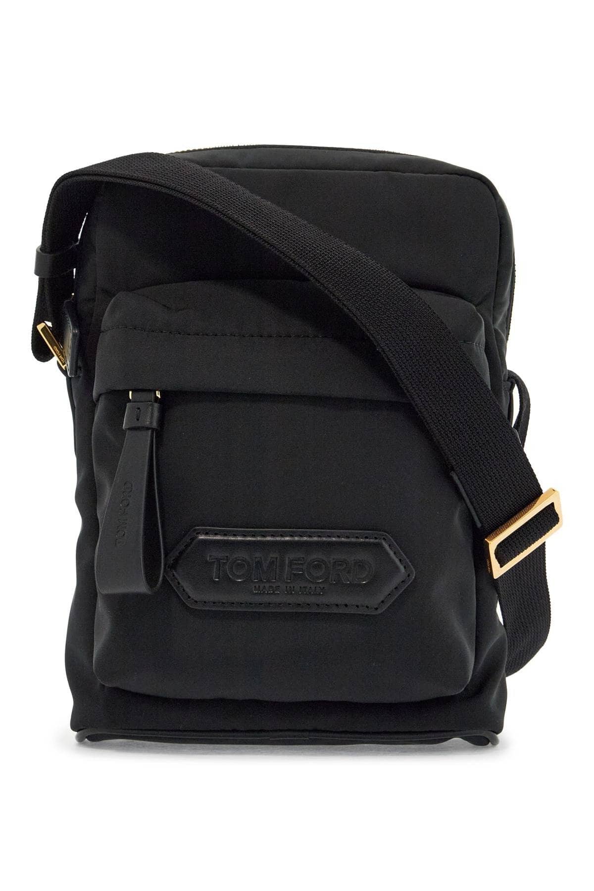 Tom Ford Elegant Black Leather And Polyester Messenger Bag With Adjustable Shoulder Strap