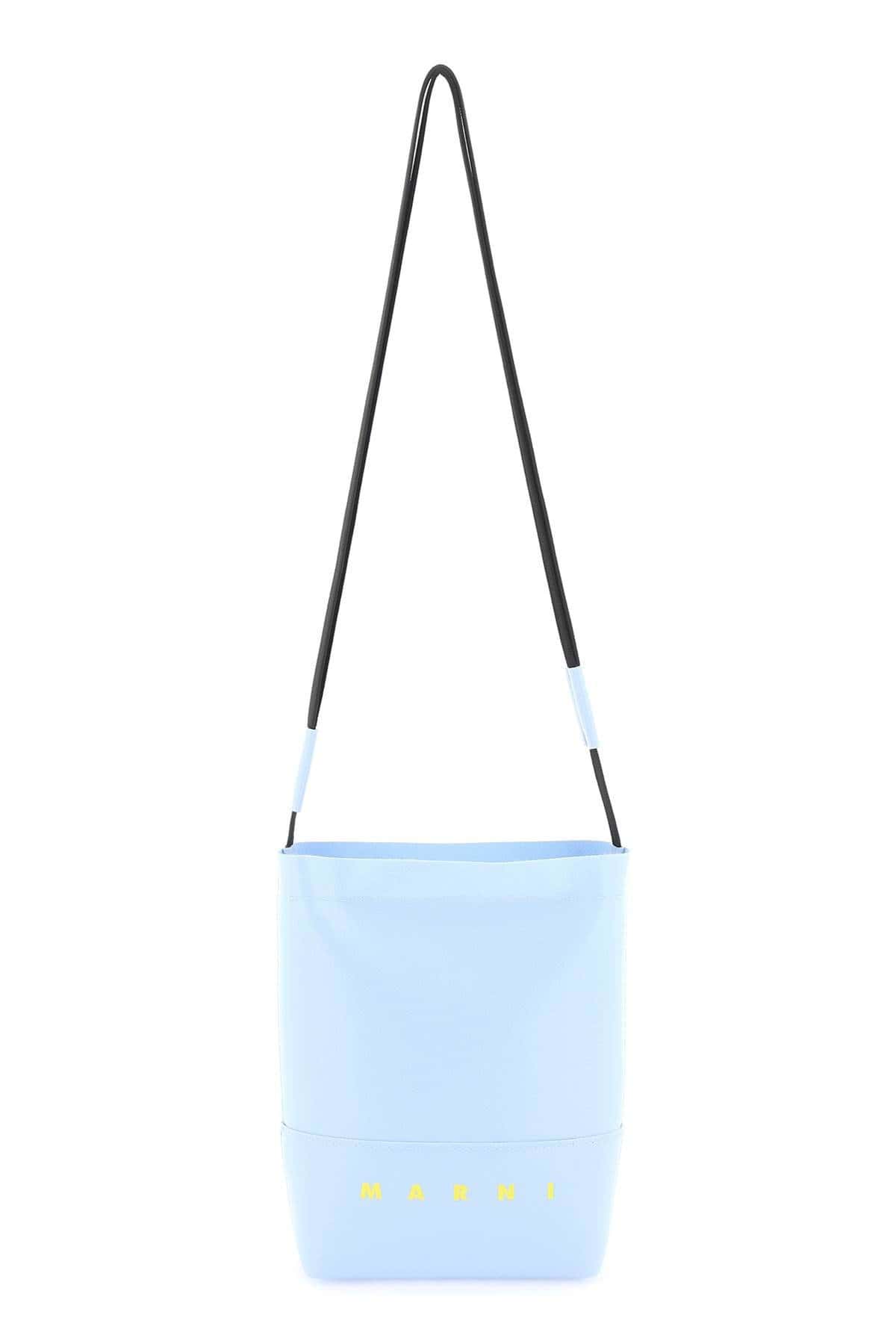Marni crossbody bag made of coated technical canvas with contrasting printed logo on front. Zip closure, unlined interior, adjustable fabric shoulder strap.