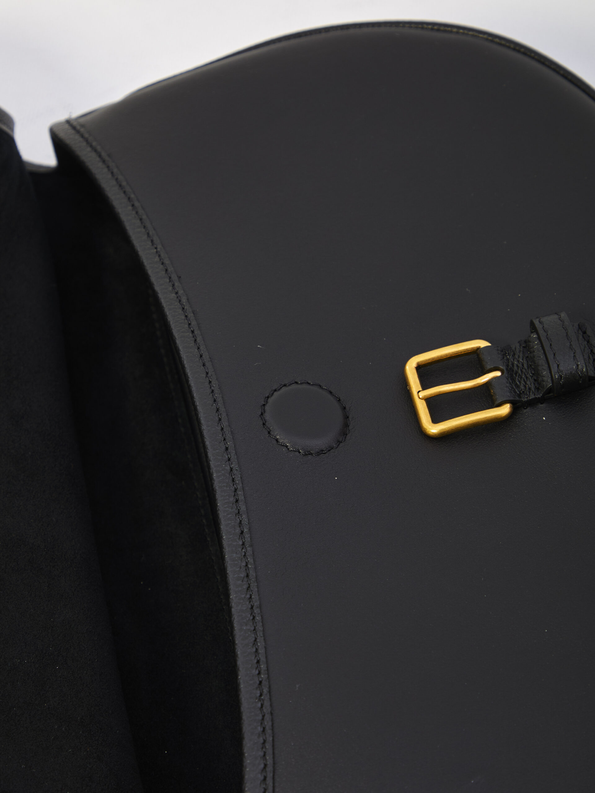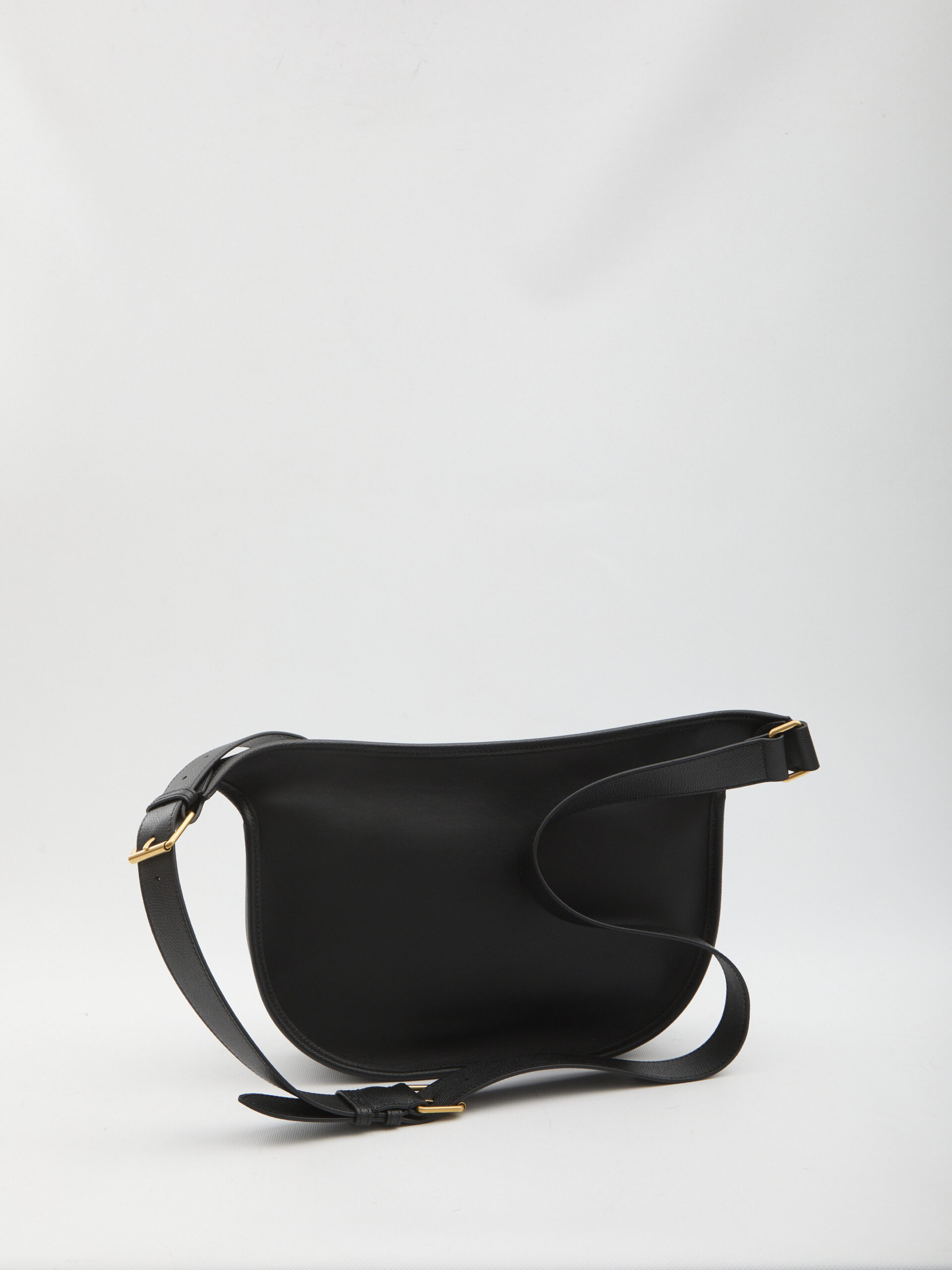 Crossbody bag that can also be worn on the waist, in black nubuck calf leather. It features an adjustable shoulder strap with a double buckle, a front closure with a strap and magnet, a metal VLogo Signature on the front, one main compartment, one interior zip pocket and two card slots, and a suede lining. Dust bag included. Any natural markings or imperfections in the leather should not be considered manufacturing defects, but are characteristic of the material.