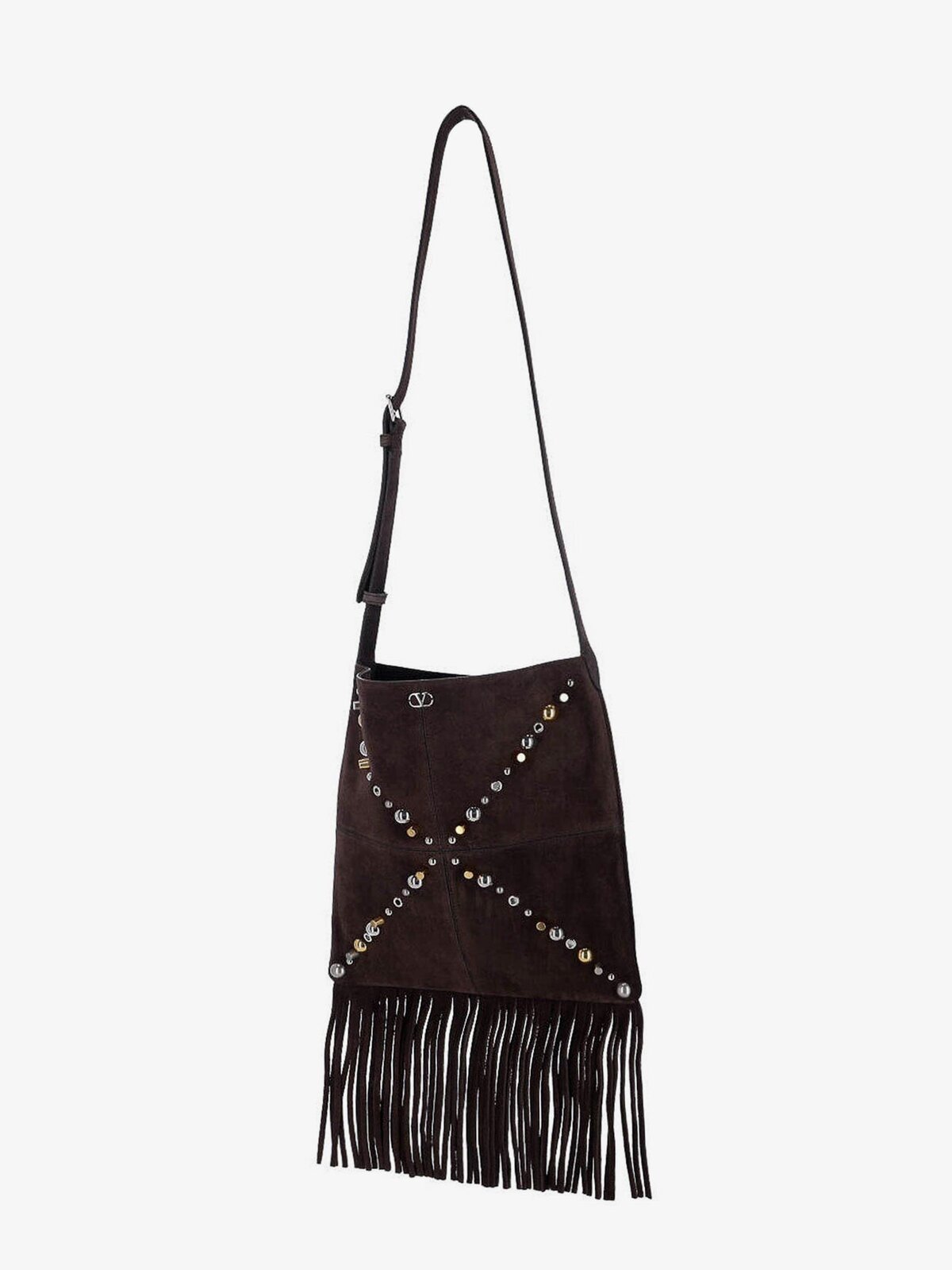 Valentino Garavani Suede Shoulder Bag With Fringes And Metal Details