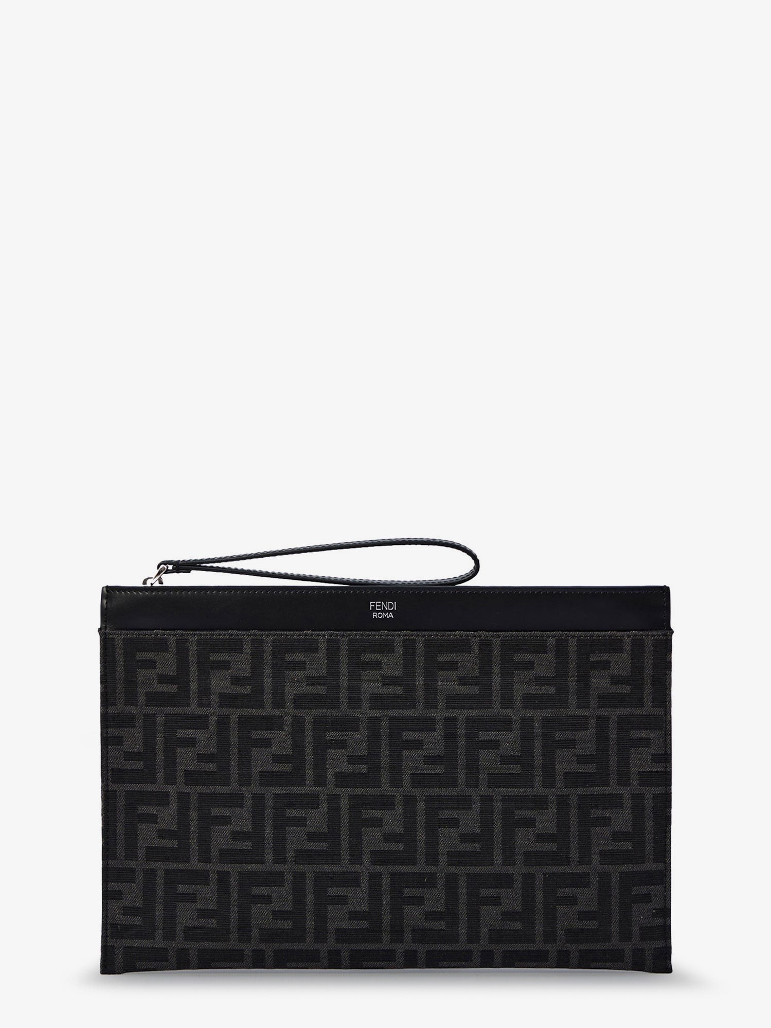 Fendi Ff Jacquard Fabric And Leather Flat Pouch Medium
