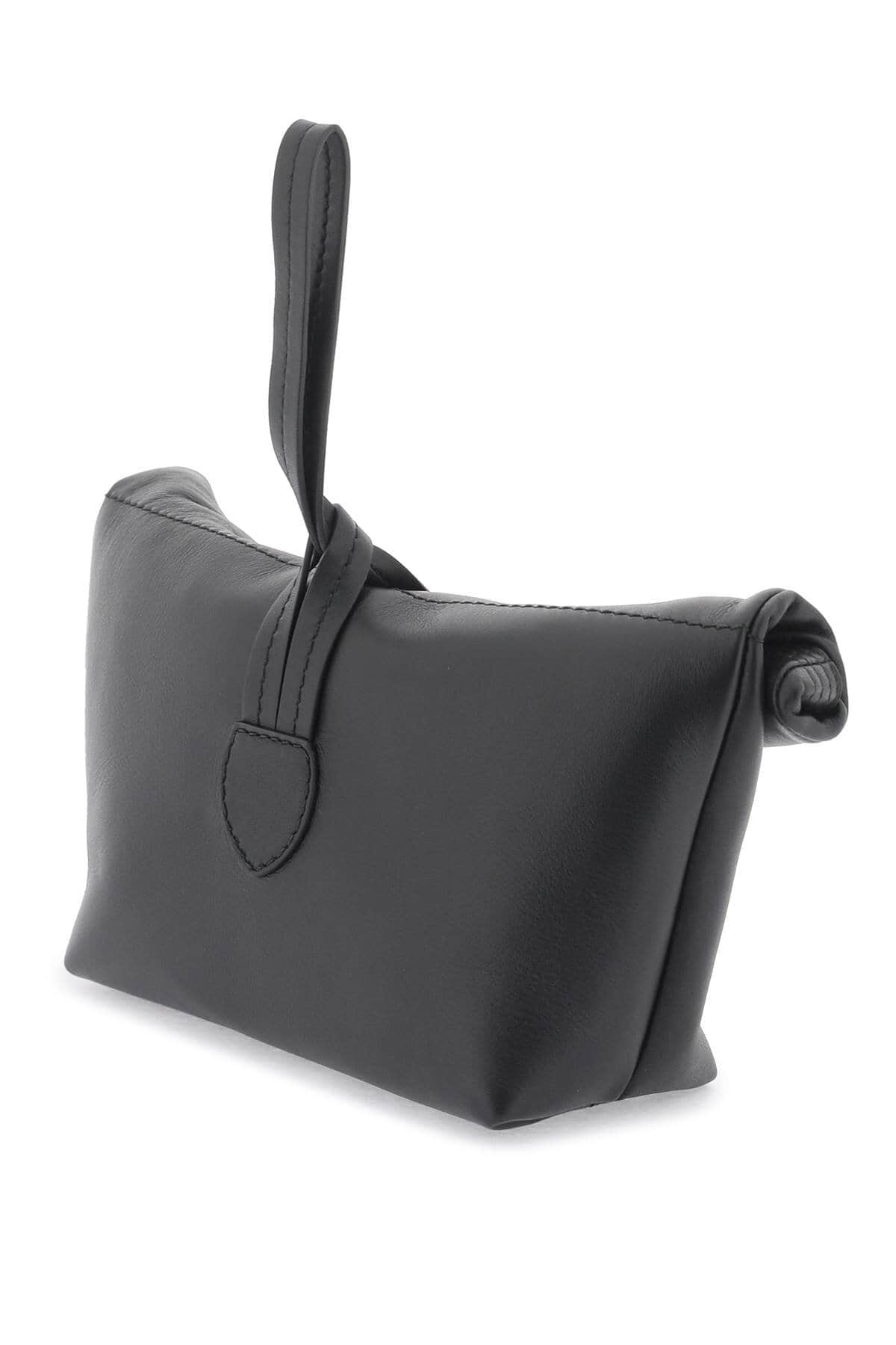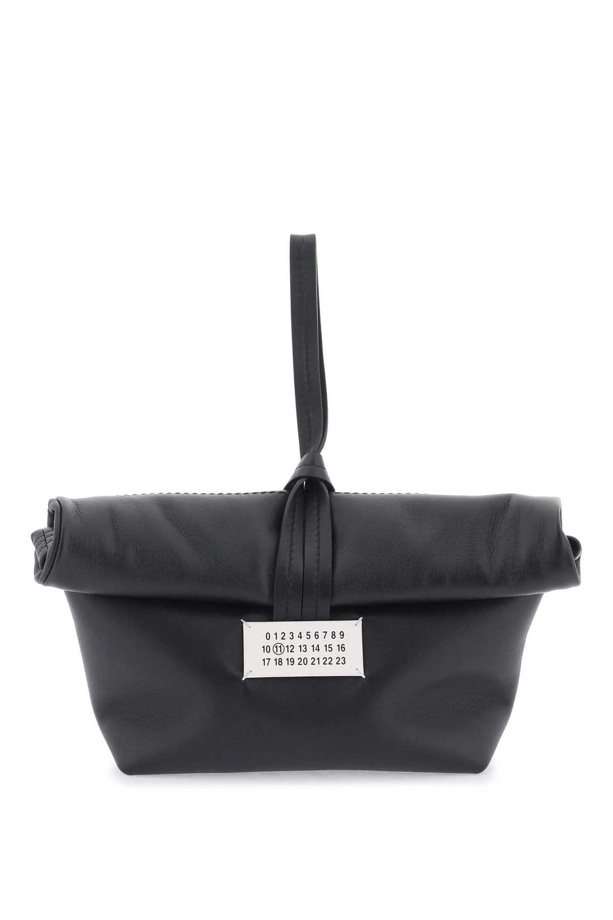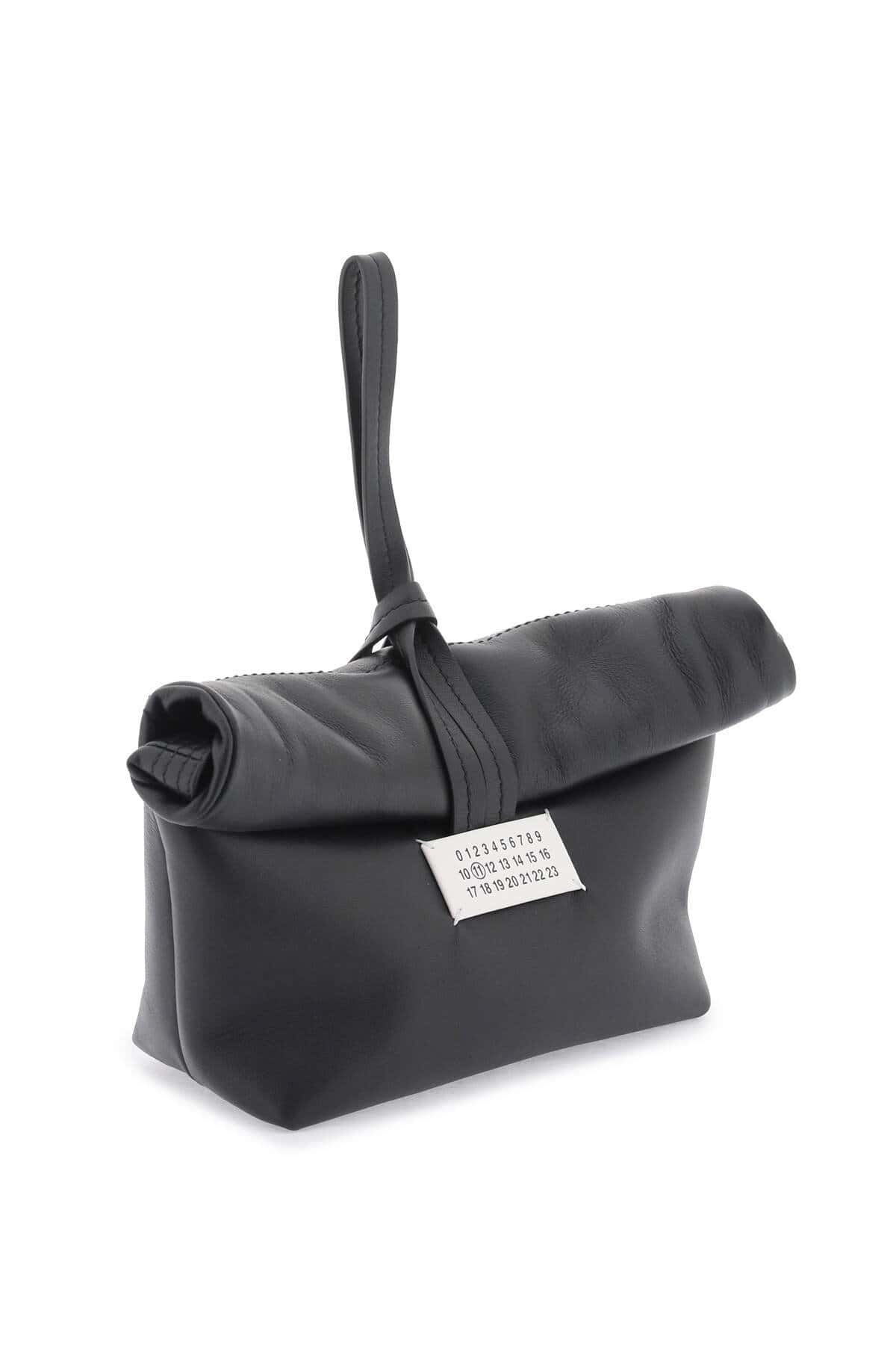 The Maison Margiela clutch is made of soft leather with a roll-top closure and the brand’s signature numerical logo applied on the front. The interior is lined with suede microfiber and features an open pocket.
