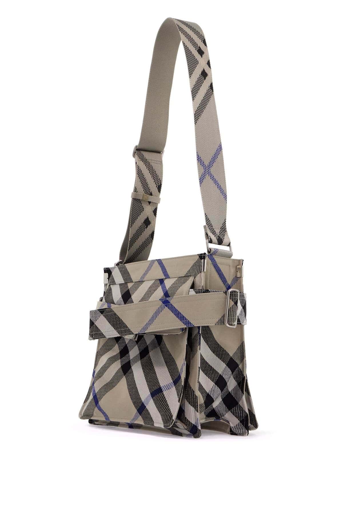 This tote bag is made of a cotton blend with the iconic Burberry Check motif in jacquard. It comes with an adjustable shoulder strap featuring B-shaped buckles. The front and back have two large pockets with flaps and an adjustable side belt. The interior is lined with a cotton blend and has a zip pocket and a fabric patch decorated with the Equestrian Knight Design. The metal accessories are brushed for a sleek finish.