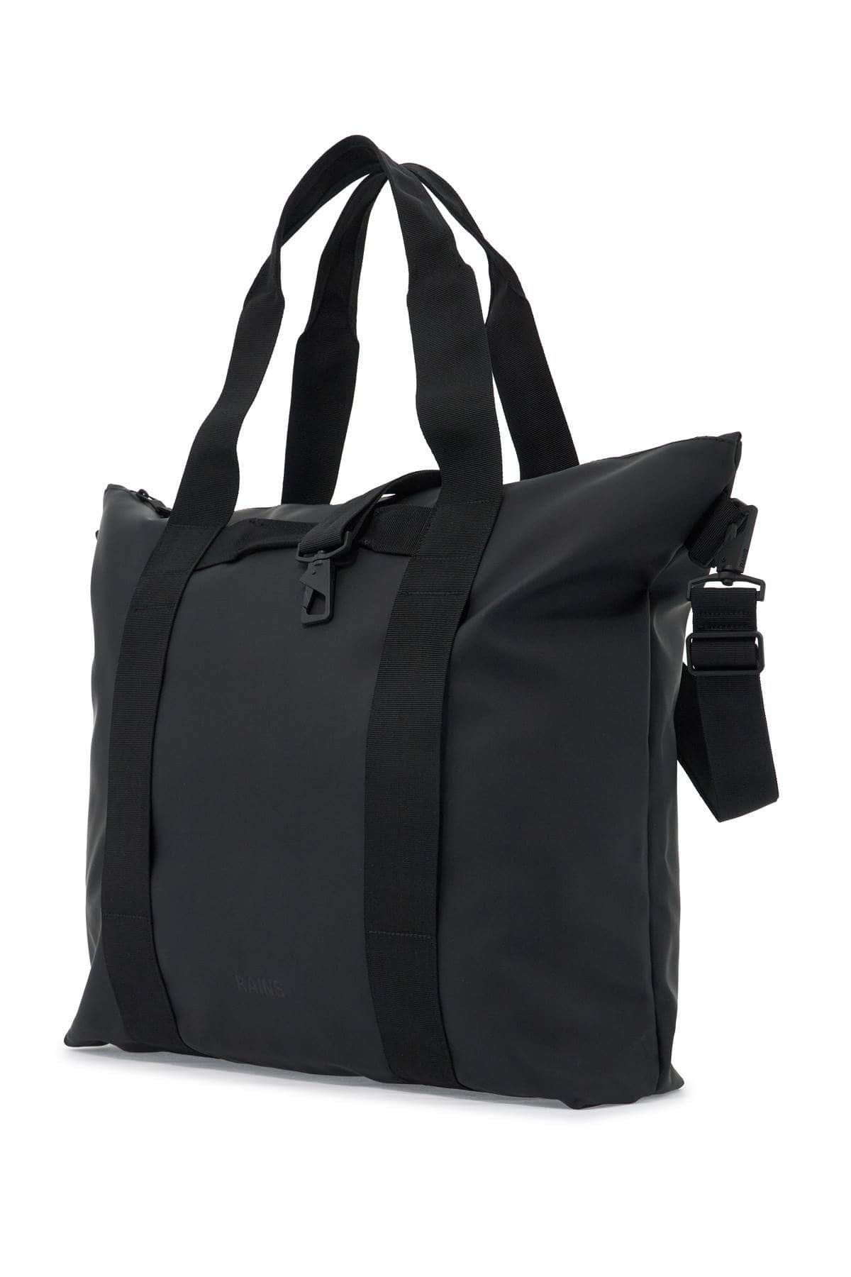 The RAINS tote bag is made of the characteristic waterproof technical fabric with double handles and an additional adjustable shoulder strap in ribbon. The top closure features a heat-sealed zip, while the interior is lined with technical canvas and includes a zip pocket. It also has side handles for added convenience.