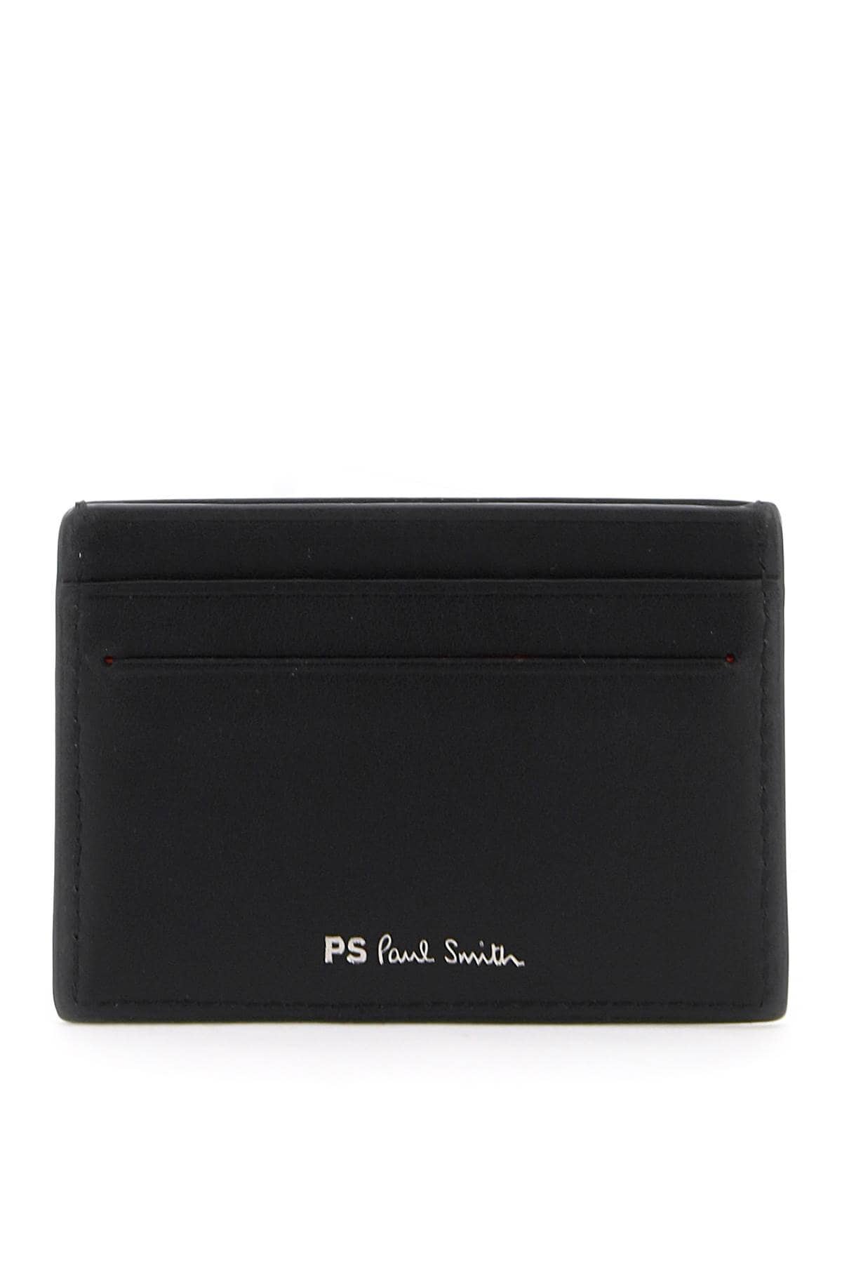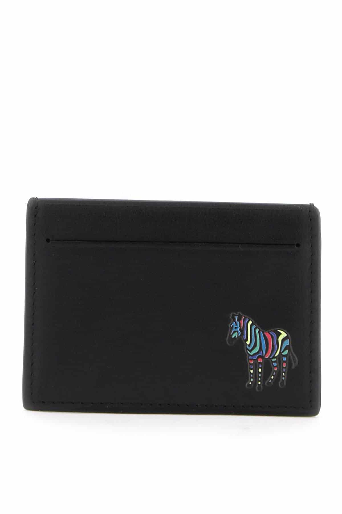 Paul Smith leather card holder decorated with multicolour-striped Zebra patch on the front. It features one credit card slot on the front, two on the back, central pocket with fabric lining. Silver-tone PS Paul Smith logo print on the back.