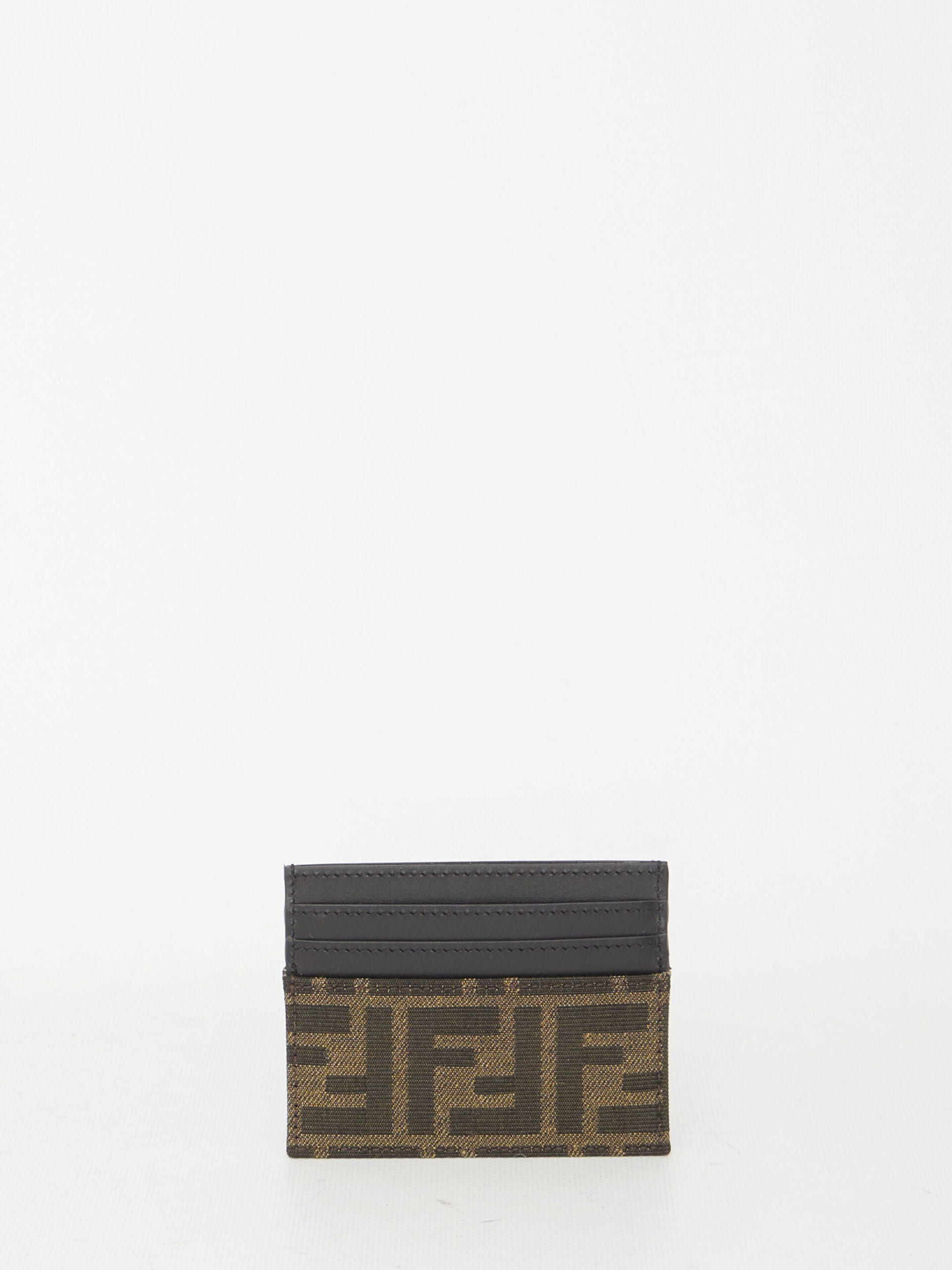Brown and tobacco FF fabric cardholder with black leather details. It features six card slots and one top slip compartment. Fendi Roma lettering in metal. Dust bag included. Any leather imperfections are not to be considered manufacturing defects, but a peculiarity of the material.