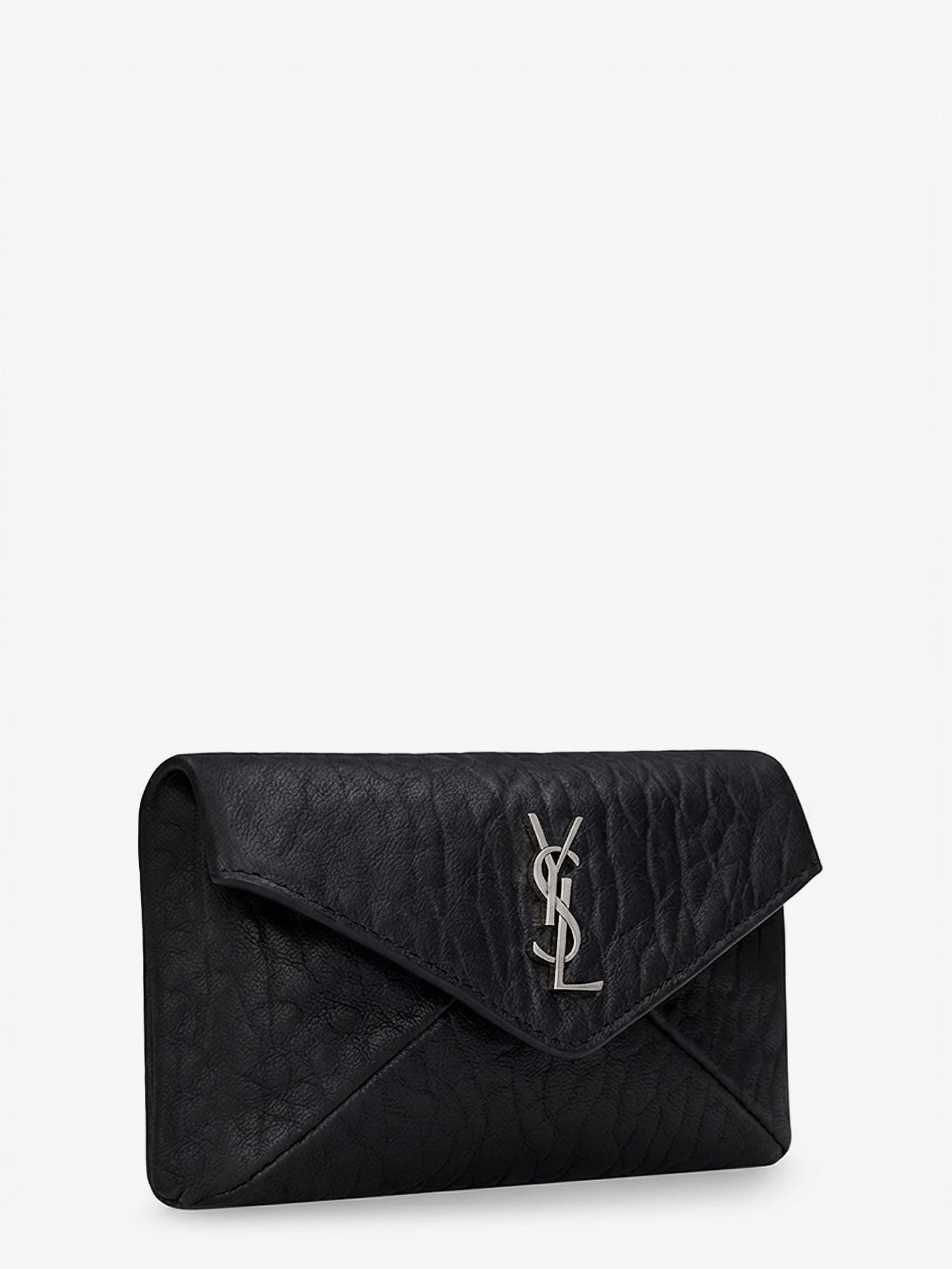 Saint Laurent Leather Envelope Card Holder With Metal Cassandre Logo