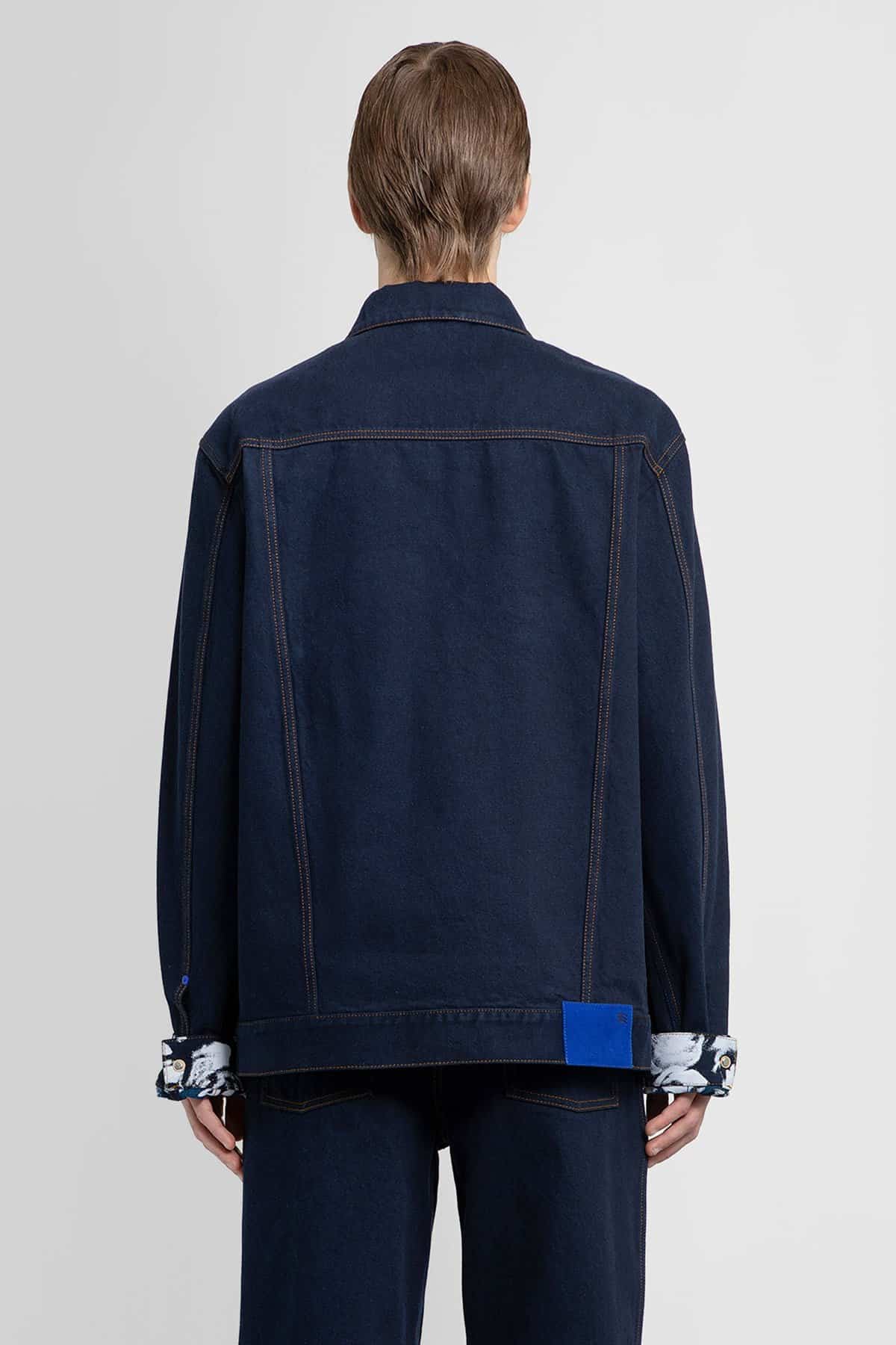 Indigo blue Heavyweight denim Collar Button flap chest pockets Side pockets Buttoned cuffs Rose-print turn-up cuffs Back equestrian knight suede patch Back buttoned waist tabs Oversized fit