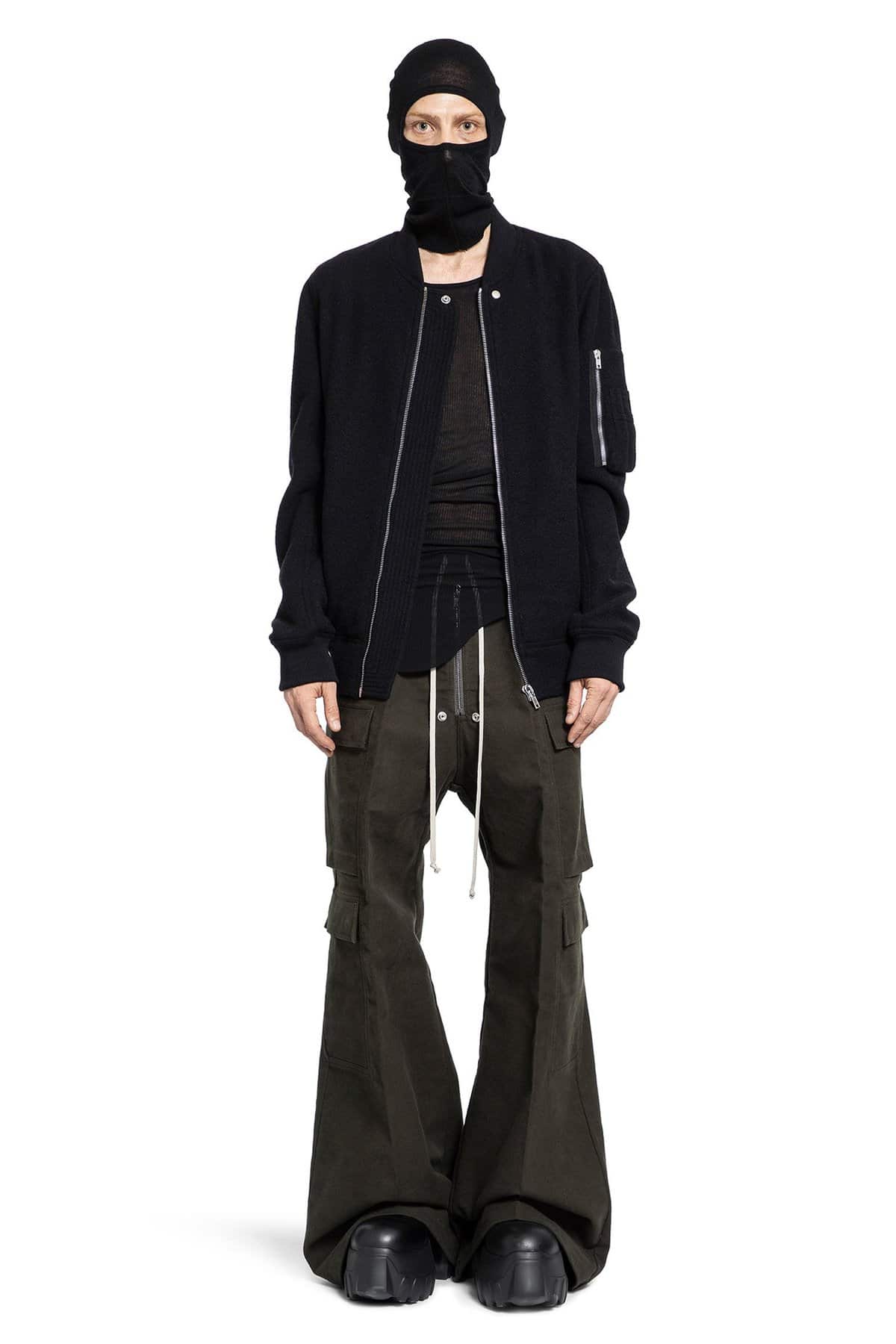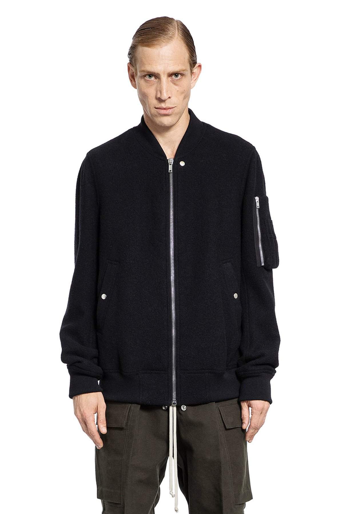 Nero Heavyweight lodenette wool Ribbed collar Zip closure Side press stud pockets Dropped shoulders Sleeve zipped pocket Ribbed hem and cuffs