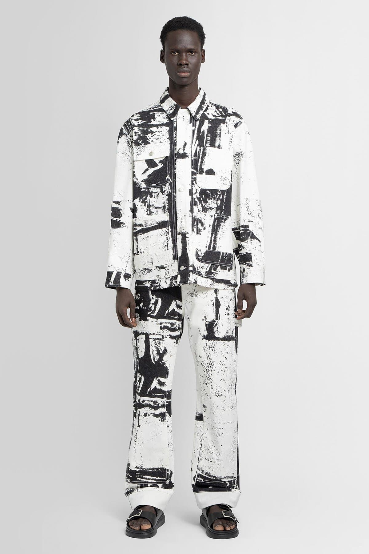 Black and white Fold print Front workwear panels Belt holes Button and zip closure 5 pockets Turn-up hems