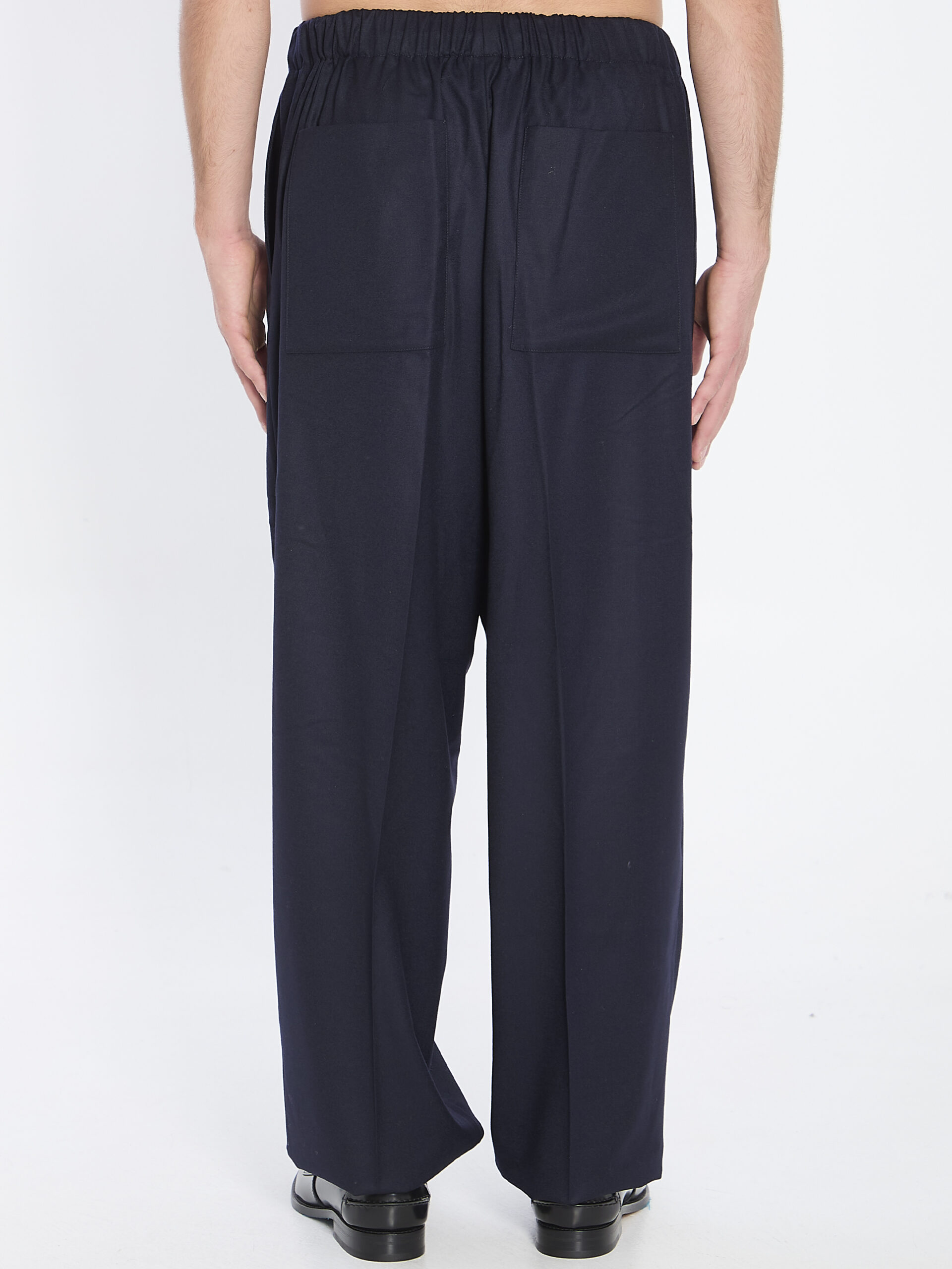 Relaxed tailored trousers in navy blue virgin wool.