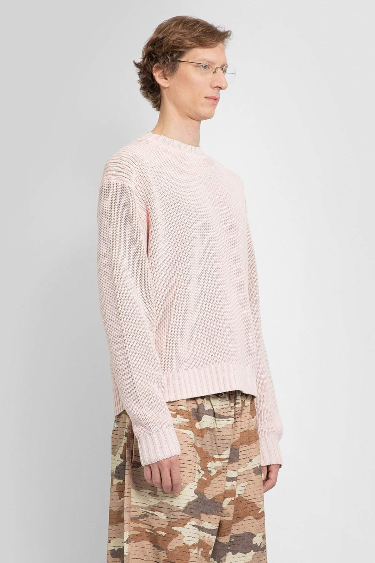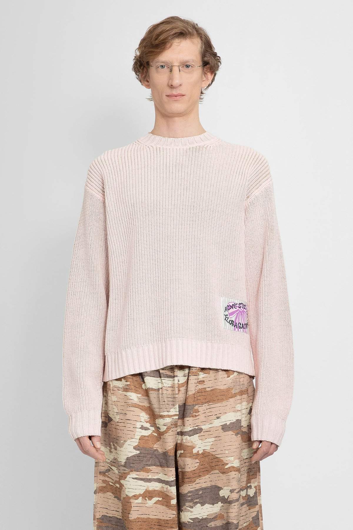 Pale pink Cotton nylon ribbed-knit Crewneck Dropped shoulders Front logo label Ribbed hem and cuffs Boxy fit