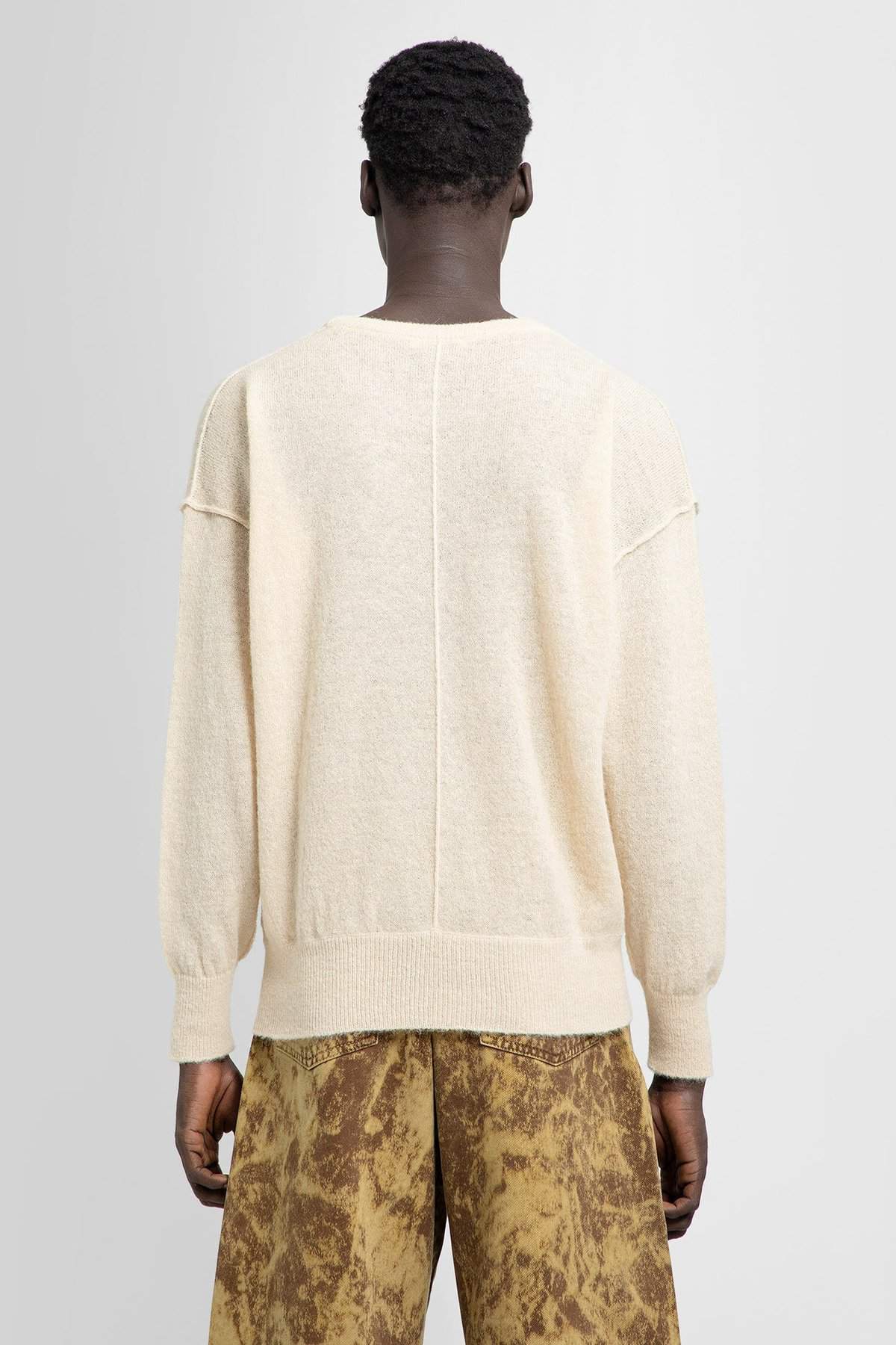 Light beige Light alpaca wool knit Crewneck Decorative stitching details Dropped shoulders Slightly round shape Ribbed hem and cuffs