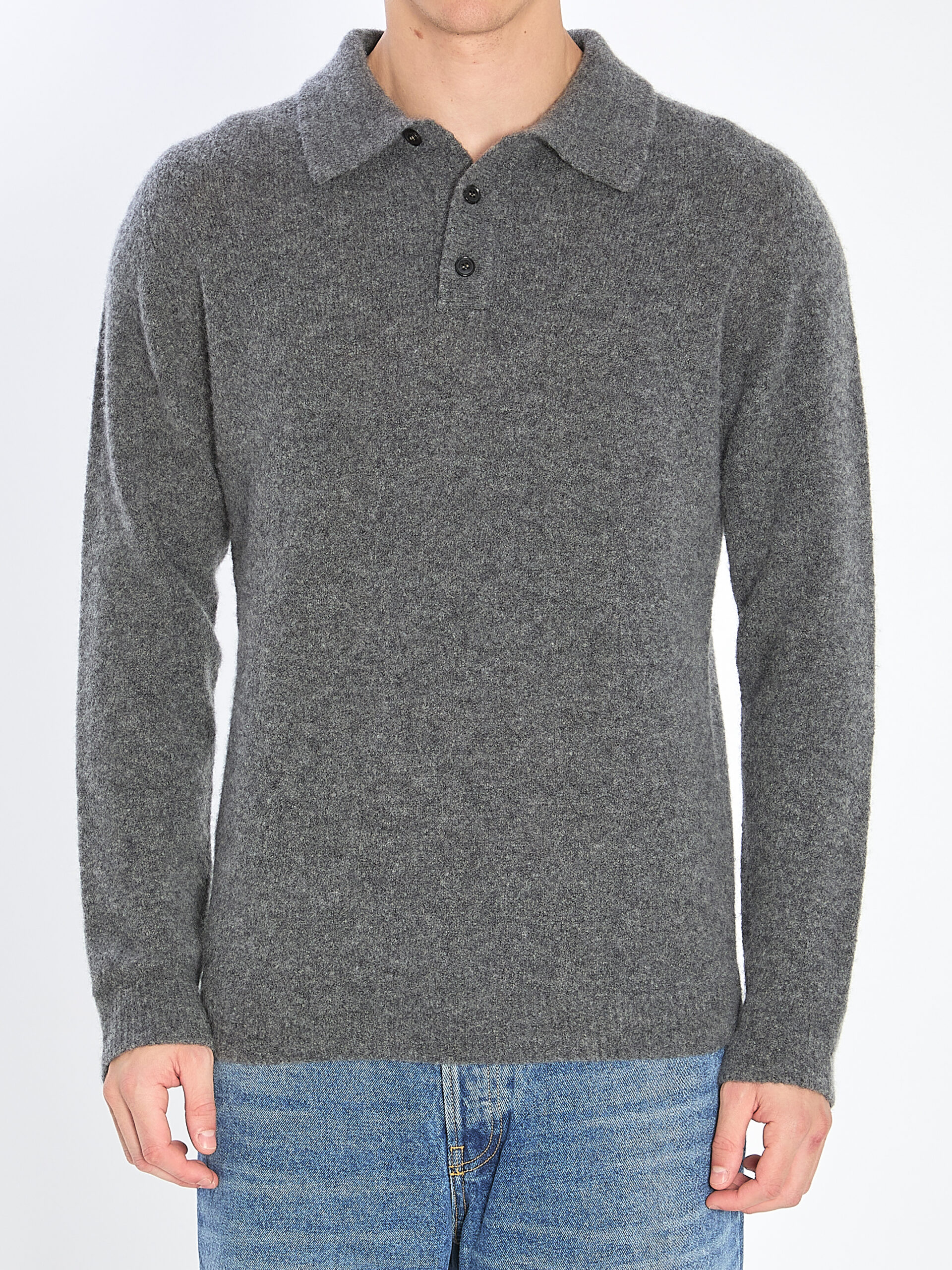 Polo shirt in a blend of cashmere, silk, and polyester in anthracite grey. Features a polo collar with a three-button closure, long sleeves, and ribbed trims. Comfortable fit.