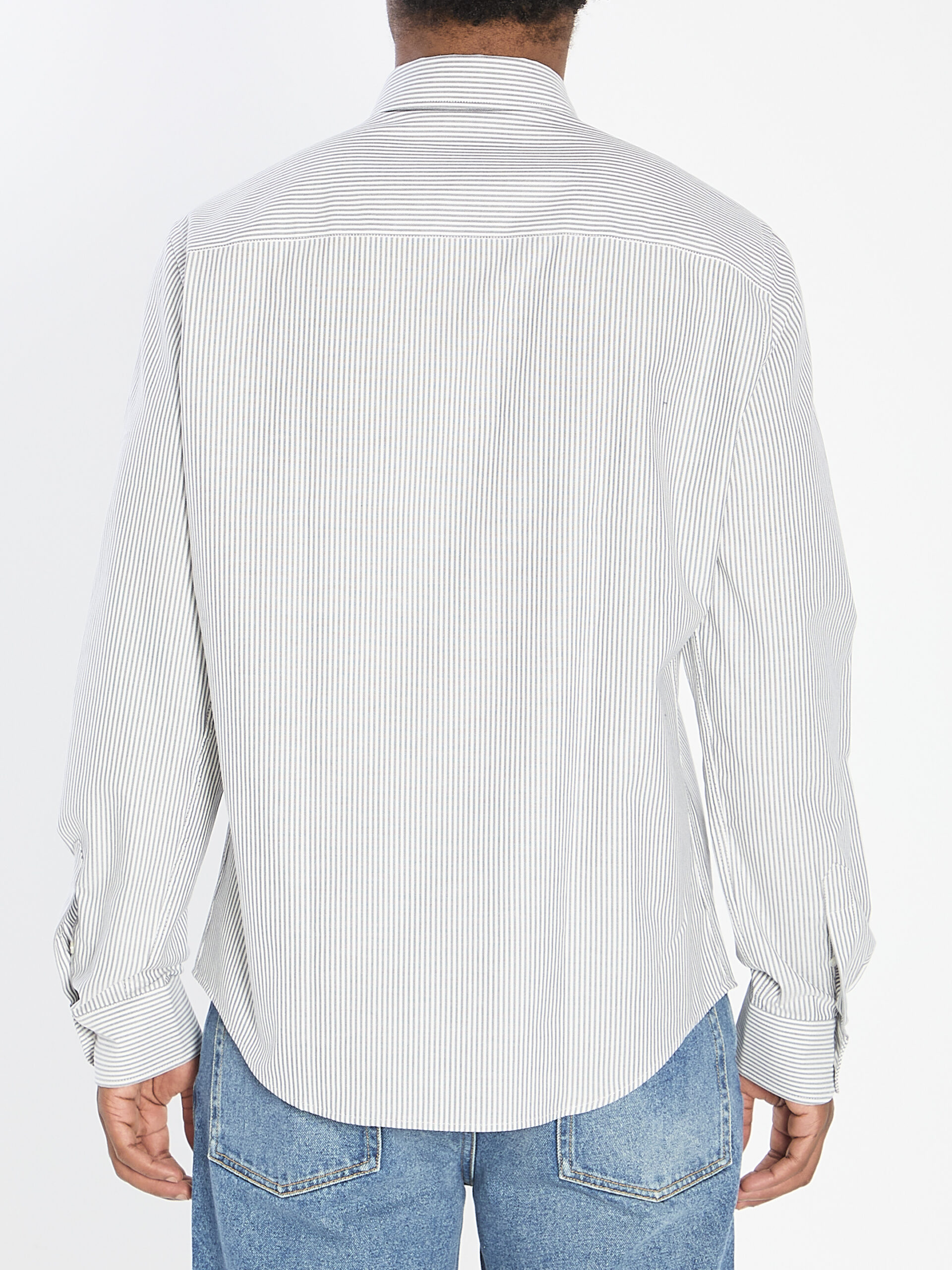 Striped white and black Oxford cotton shirt. Featuring a button-down collar with front closure, buttoned cuffs, and red Ami de Coeur logo embroidered on the chest. Classic fit.