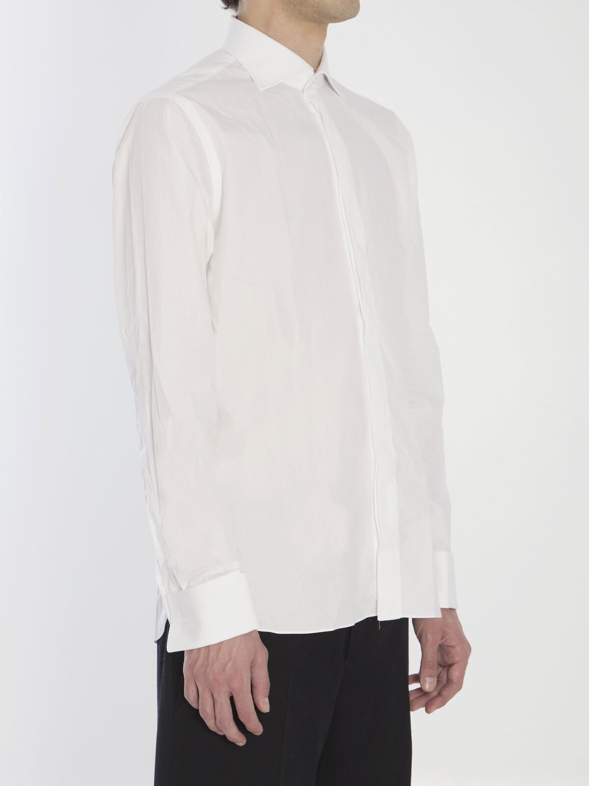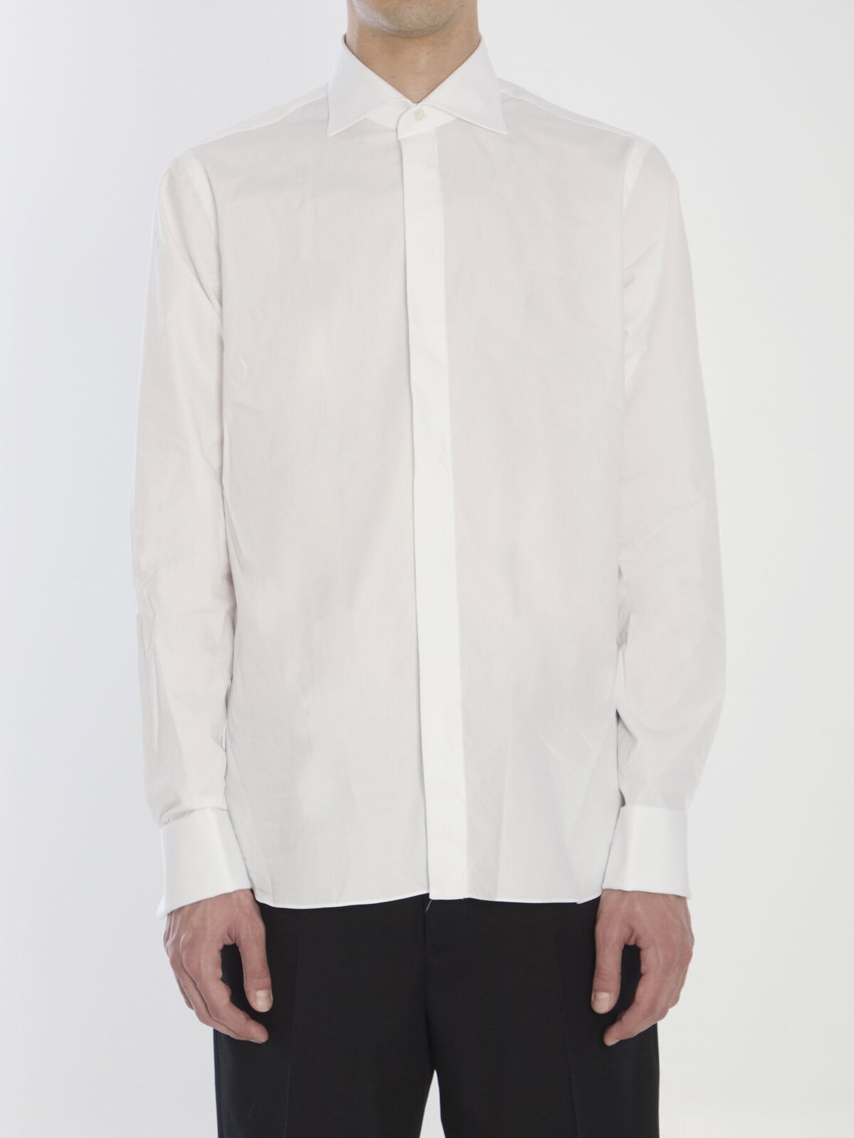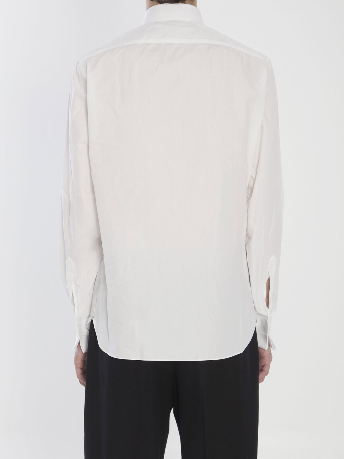 Marechiaro shirt in white cotton poplin. It features a French collar, front button closure, and cuffs for cufflinks.