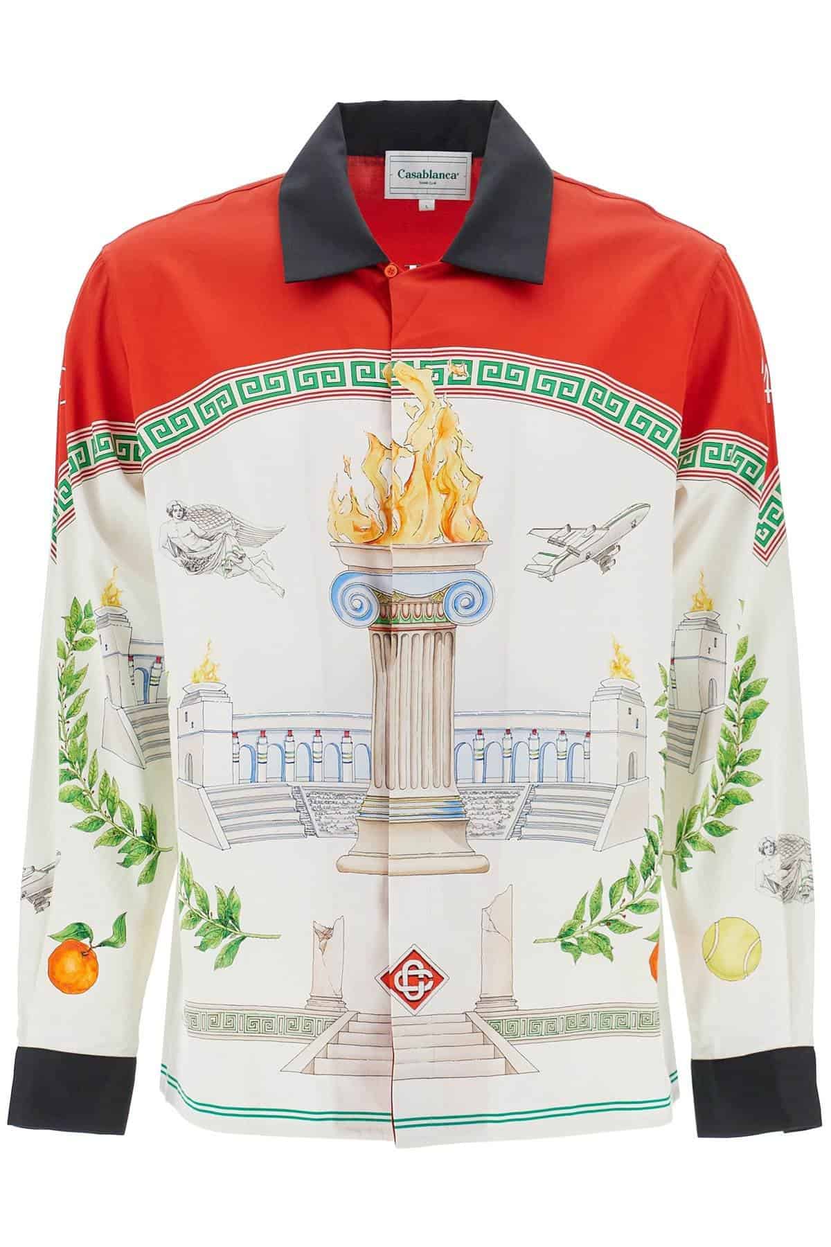 The Casablanca long-sleeved shirt is made of cotton and features an all-over “Unique Games” print. It has a relaxed fit with a Cuban collar, a chest pocket, and hidden buttons. The model is 187 cm tall and wears size L.