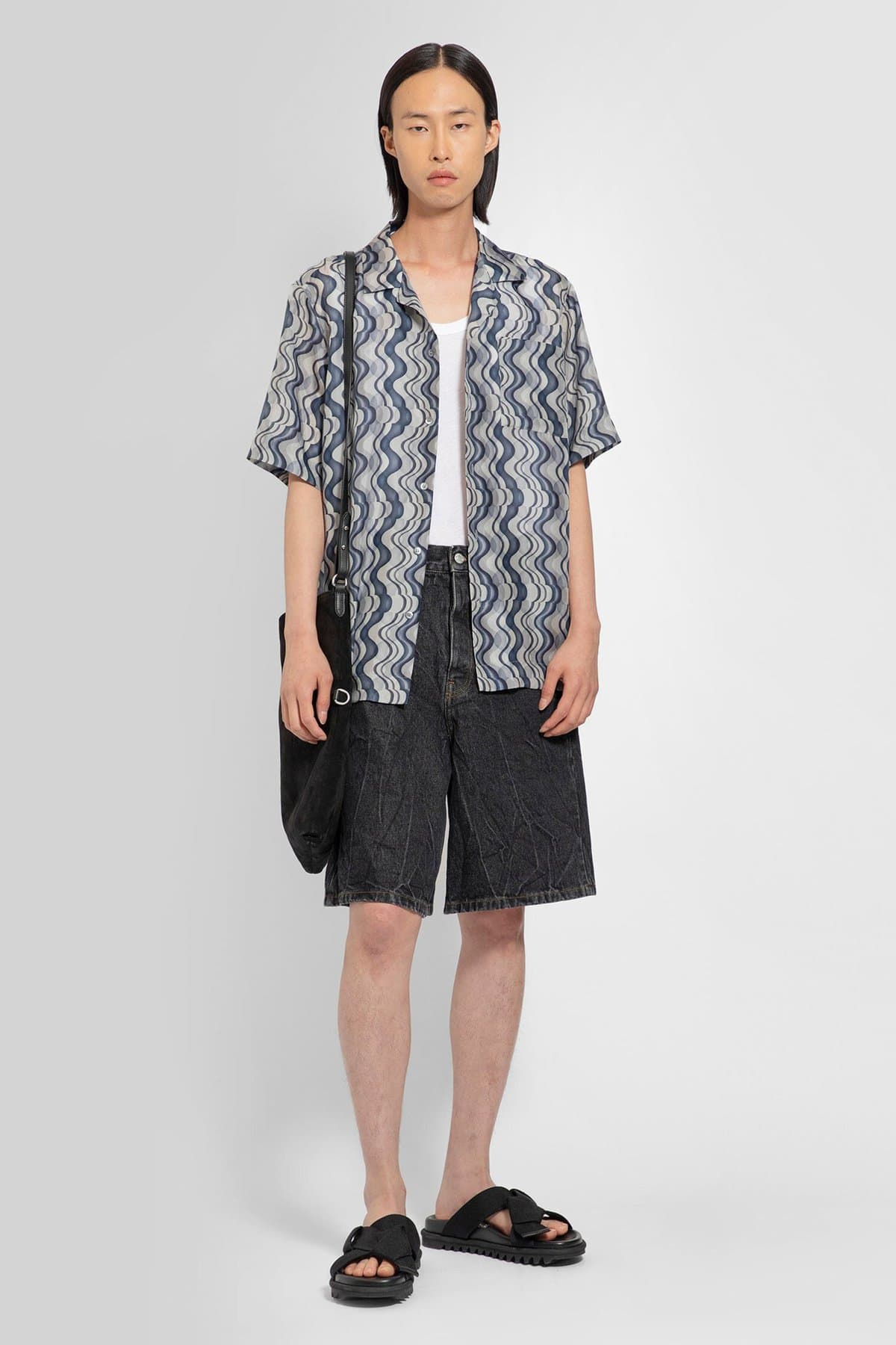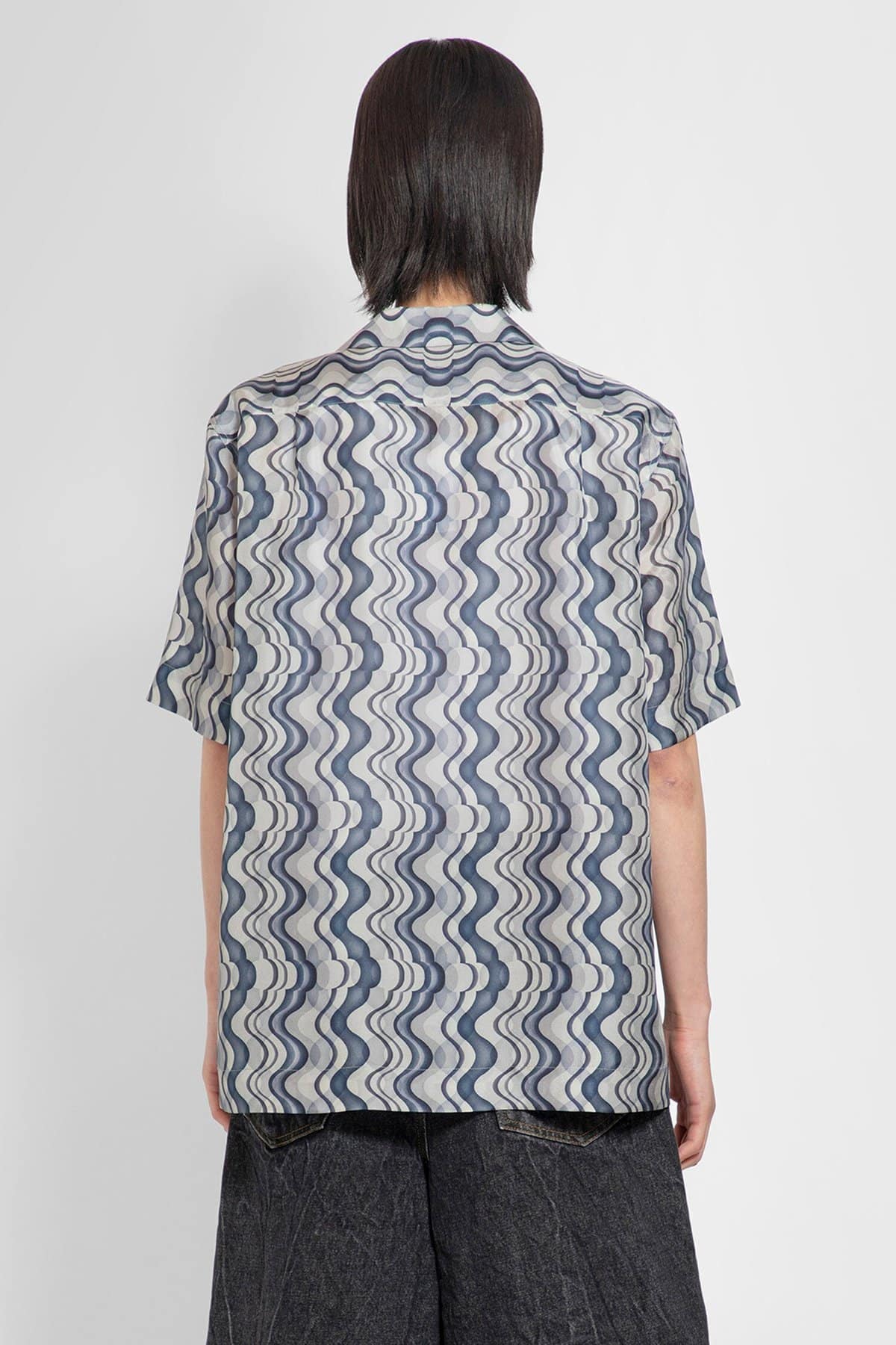 Multicolor Blue/grey Graphic print Notched collar Button closure Dropped shoulders Short sleeves Back pleats