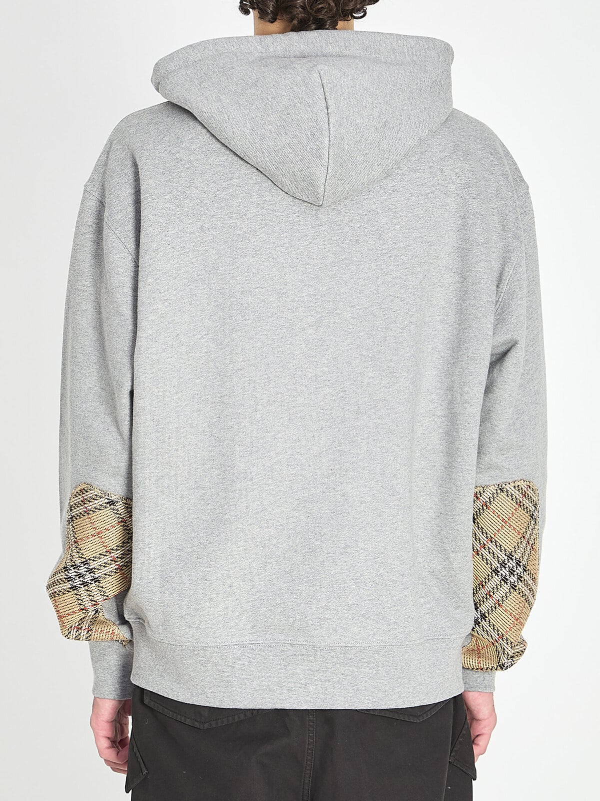 Sweatshirt in grey cotton jersey. It features a hood with Check motif drawstring and cords, a full-zip front closure, two front kangaroo pockets, tone-on-tone embroidered Equestrian Knight Design on the chest, long sleeves with Check motif elbow patches, elasticized hem and cuffs, and ribbed trims. Regular fit.