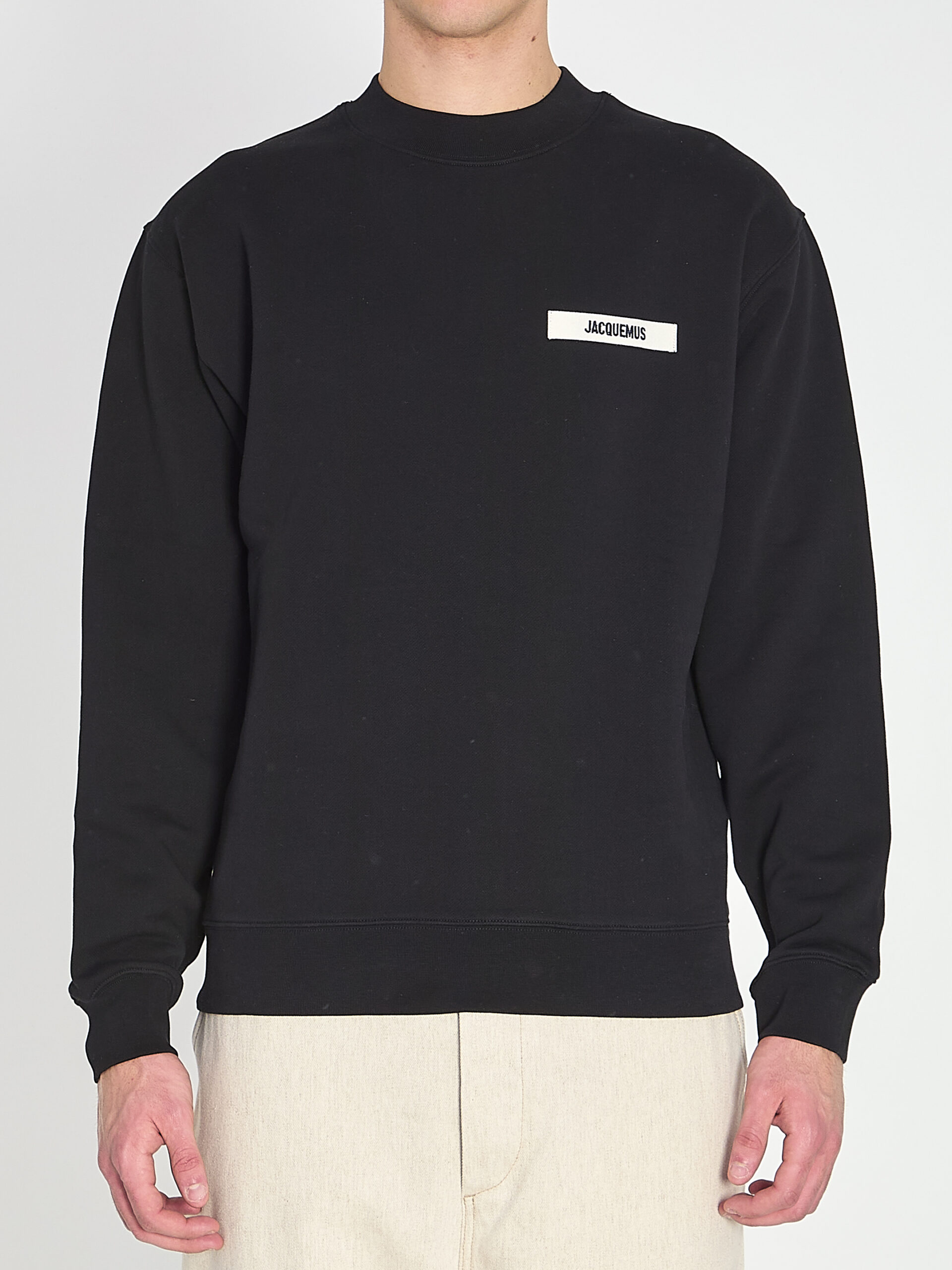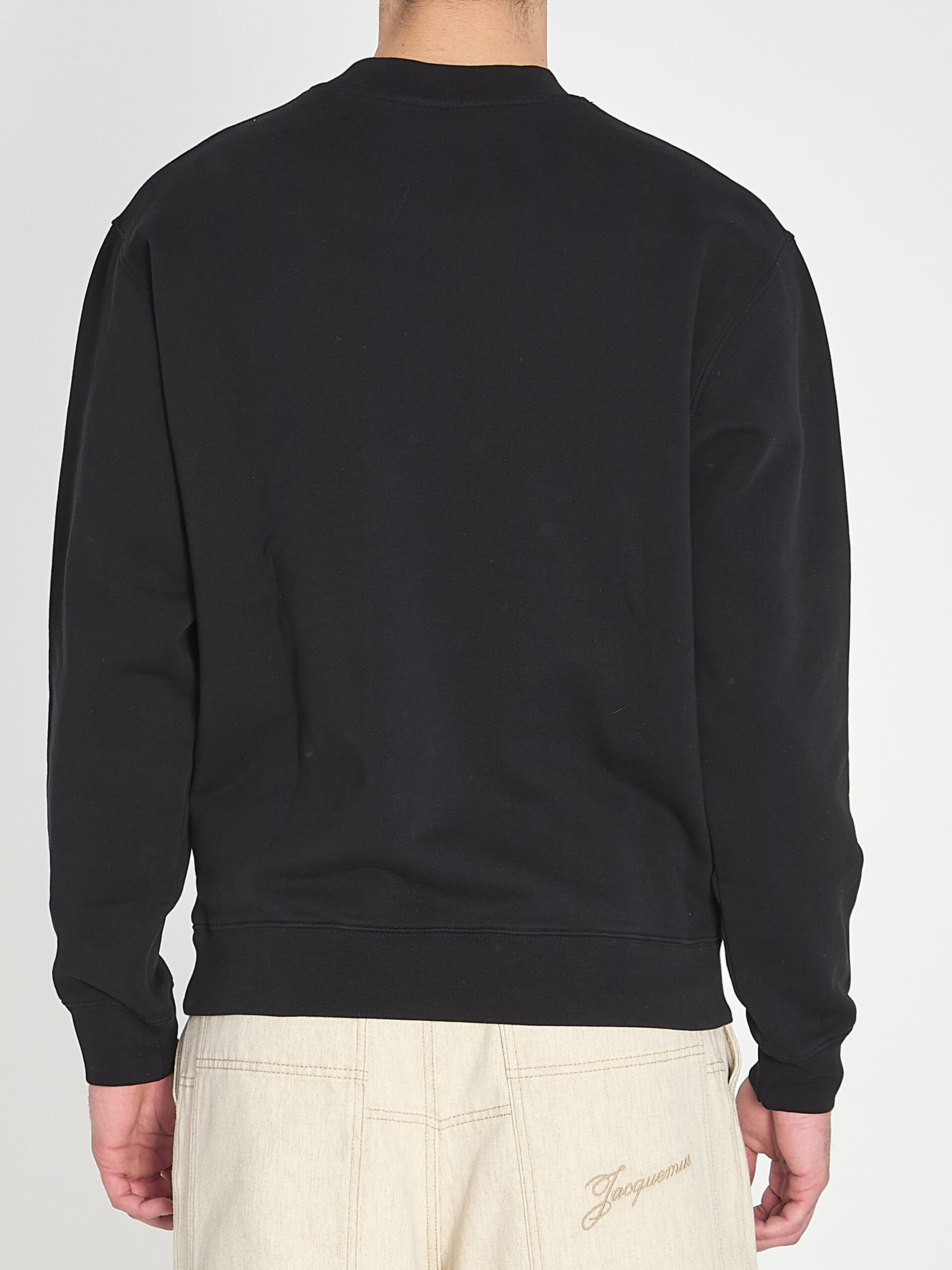 Black organic cotton fleece sweatshirt. It features a crew neck, embroidered gros-grain logo on the chest, ribbed cuffs and hem, and ribbed finishes. Comfortable fit.