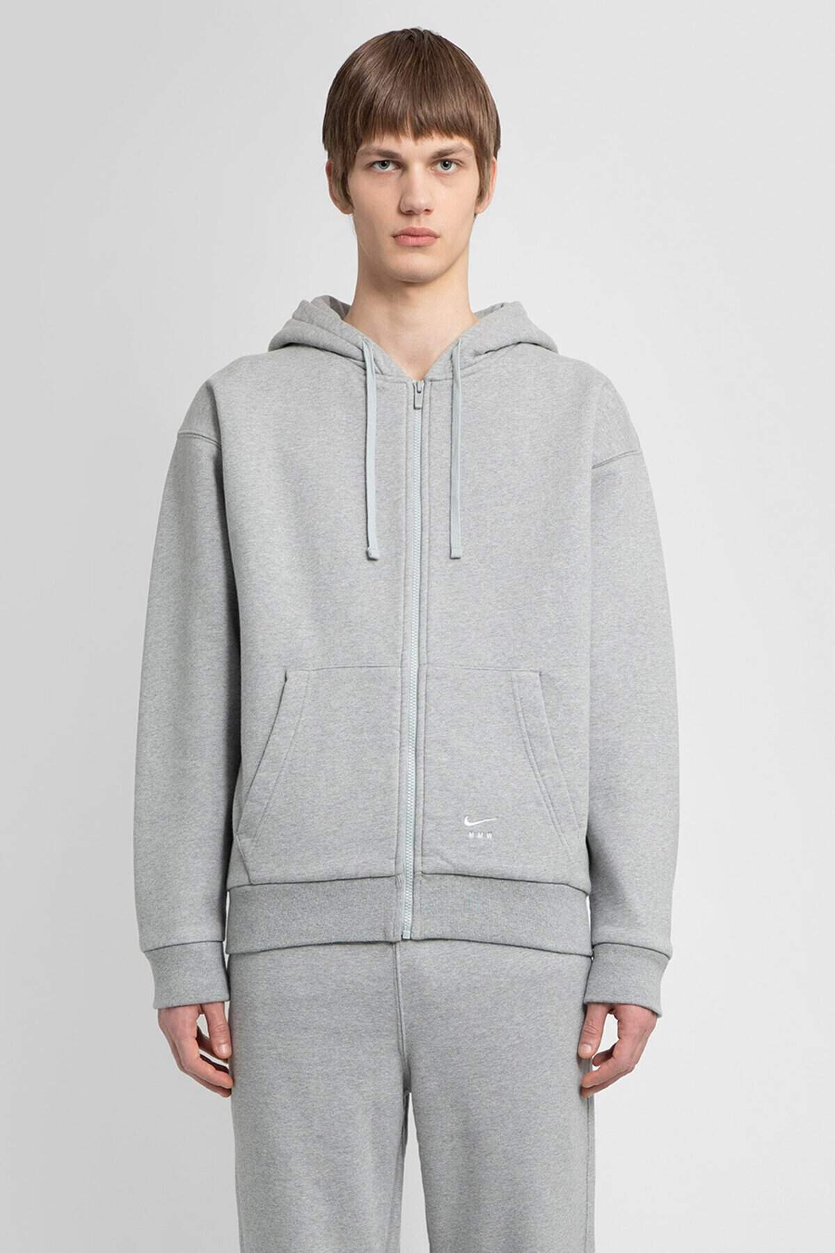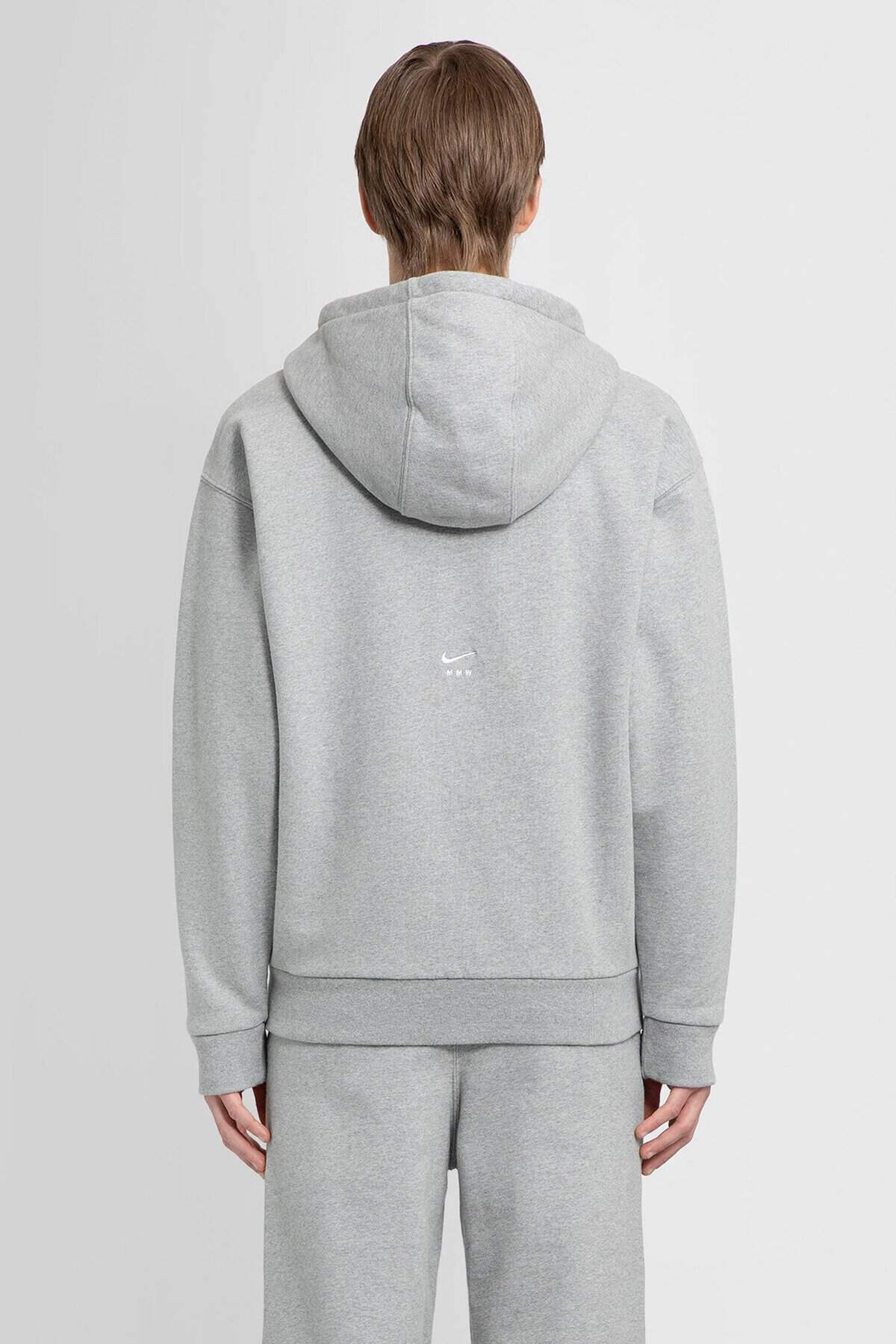 In collaboration with matthew williams Heather grey Hood with drawstrings Zip closure Front and back embroidered collaboration logos Chest swoosh embroidery Front pockets Dropped shoulders Ribbed hem and cuffs