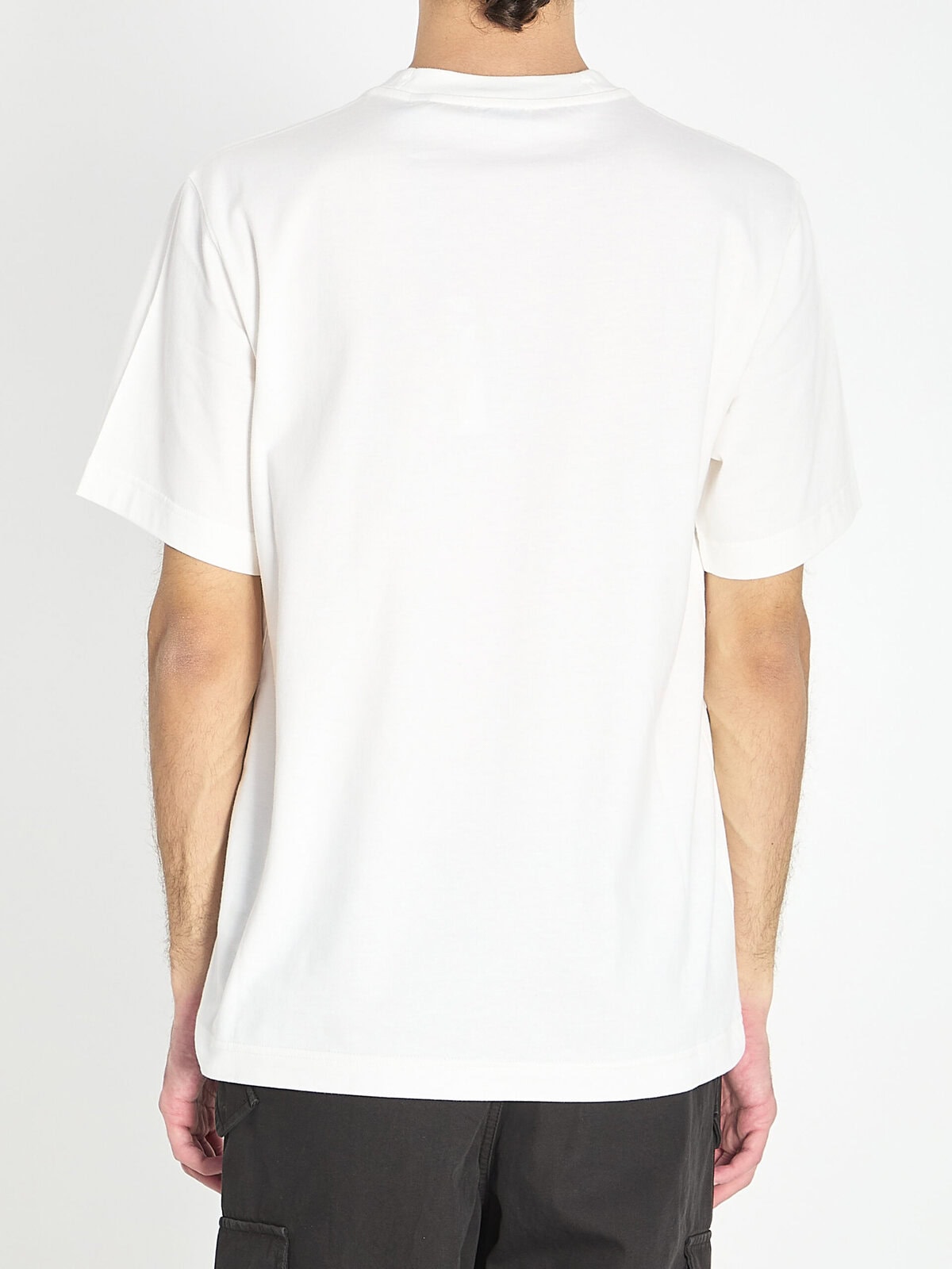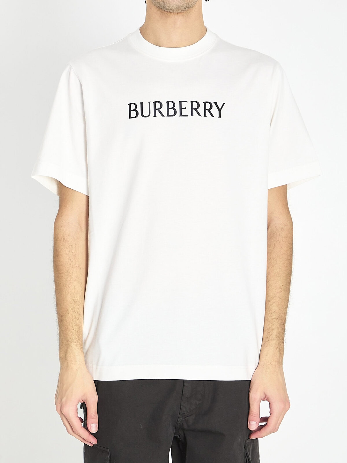 T-shirt in white lightweight cotton jersey. It features a crew neck, short sleeves, a black Burberry print on the front, and ribbed trims. Regular fit.