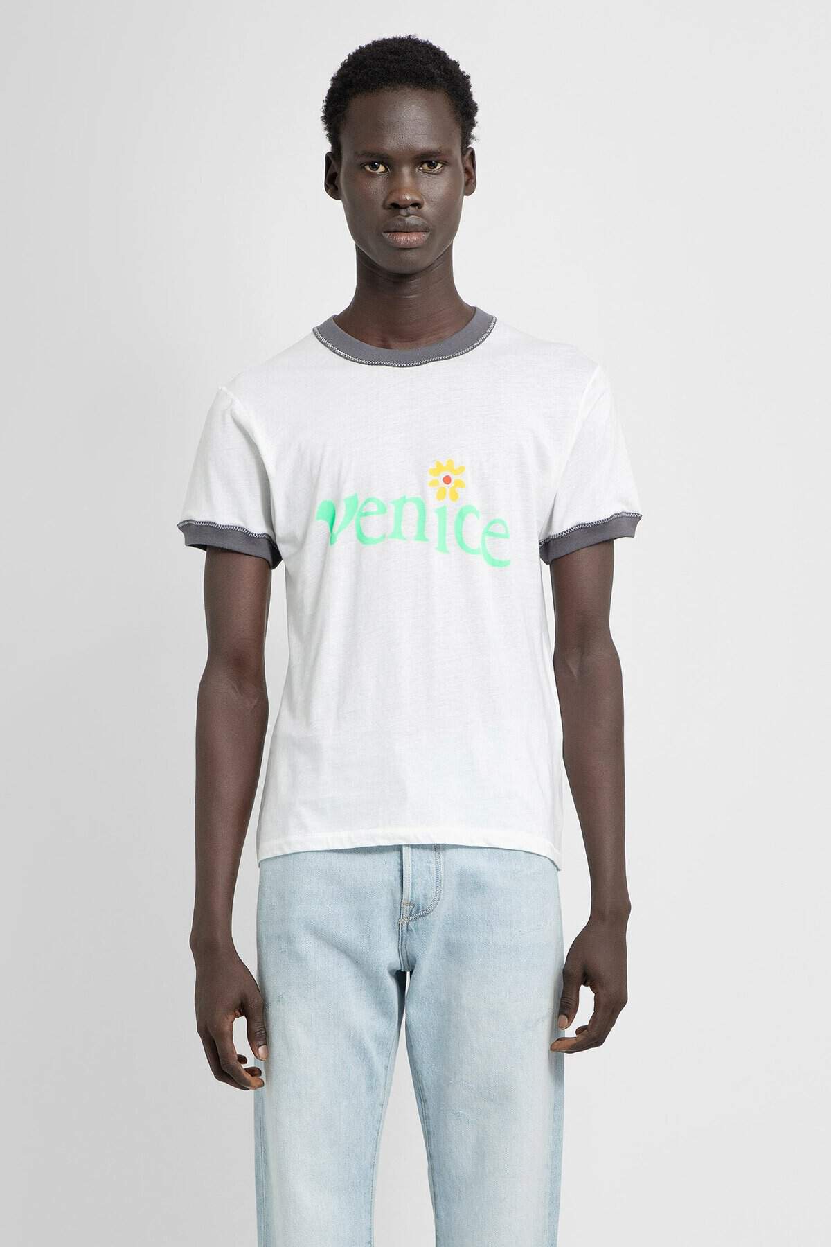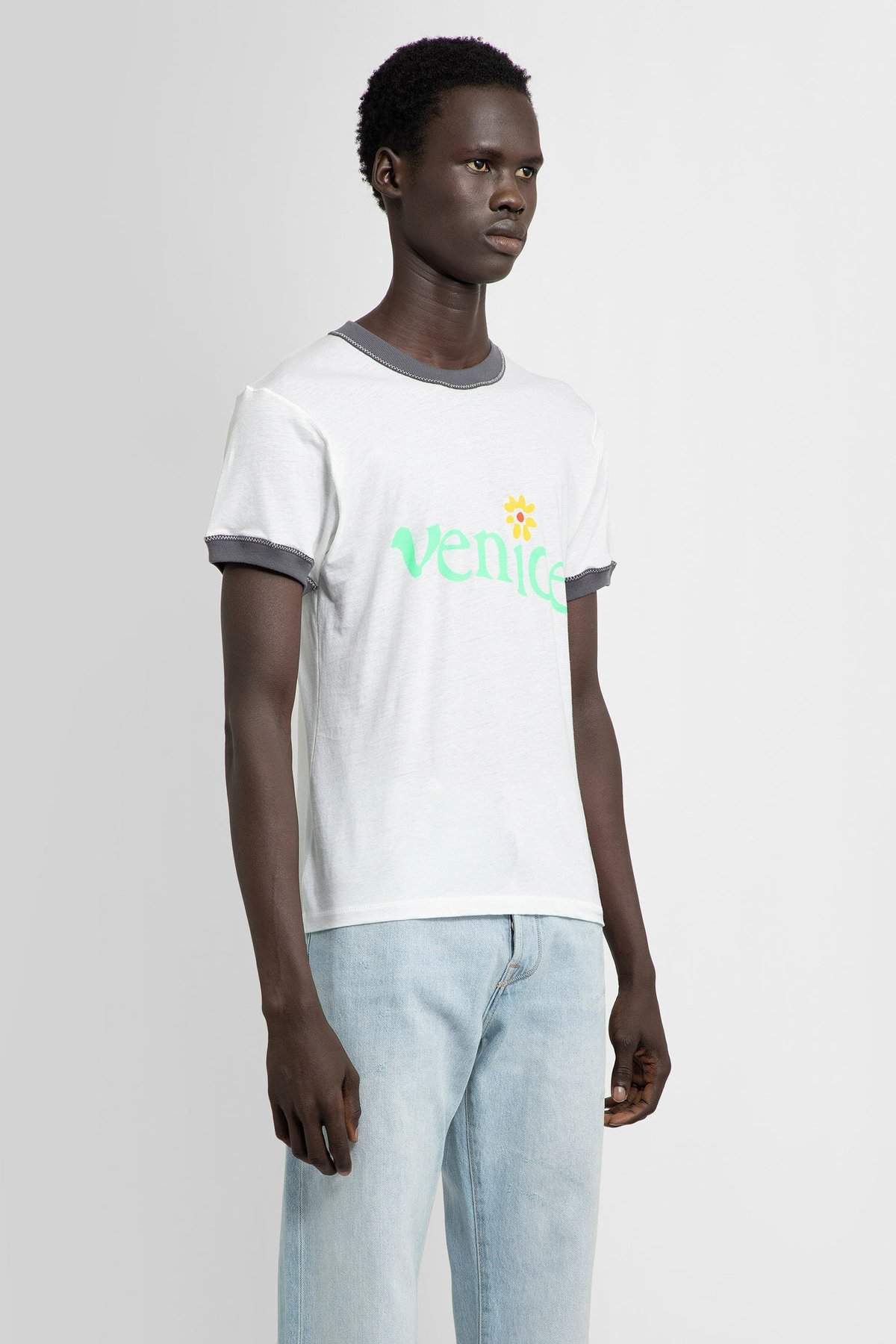Bianco Inside-out jersey Contrasting round neck Front venice graphic print Short sleeves Contrasting cuffs Regular fit