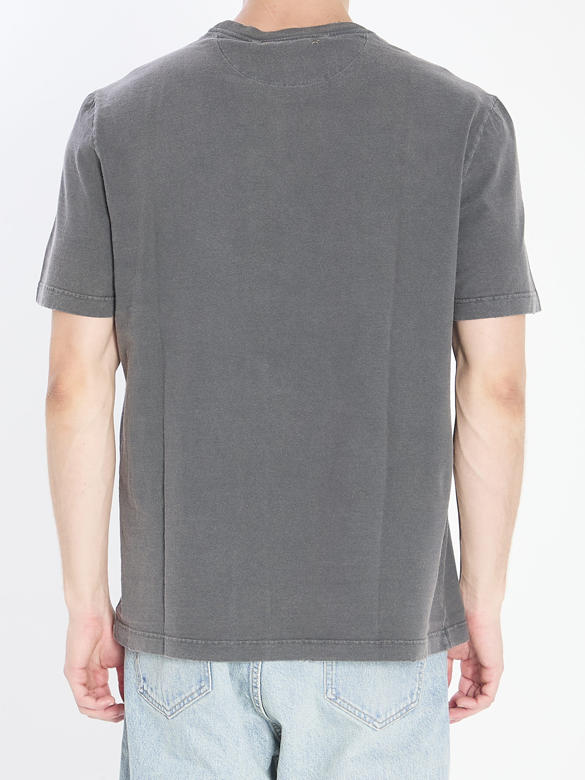 Anthracite grey brushed cotton jersey T-shirt. Featuring a crew neck, short sleeves, reversed Golden print on the front, star logo on the back, and ribbed finish. Distressed effect. Regular fit.