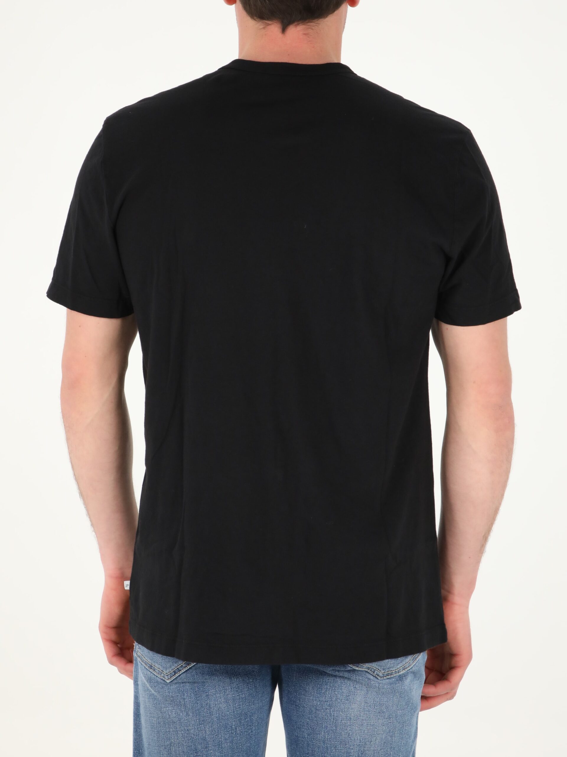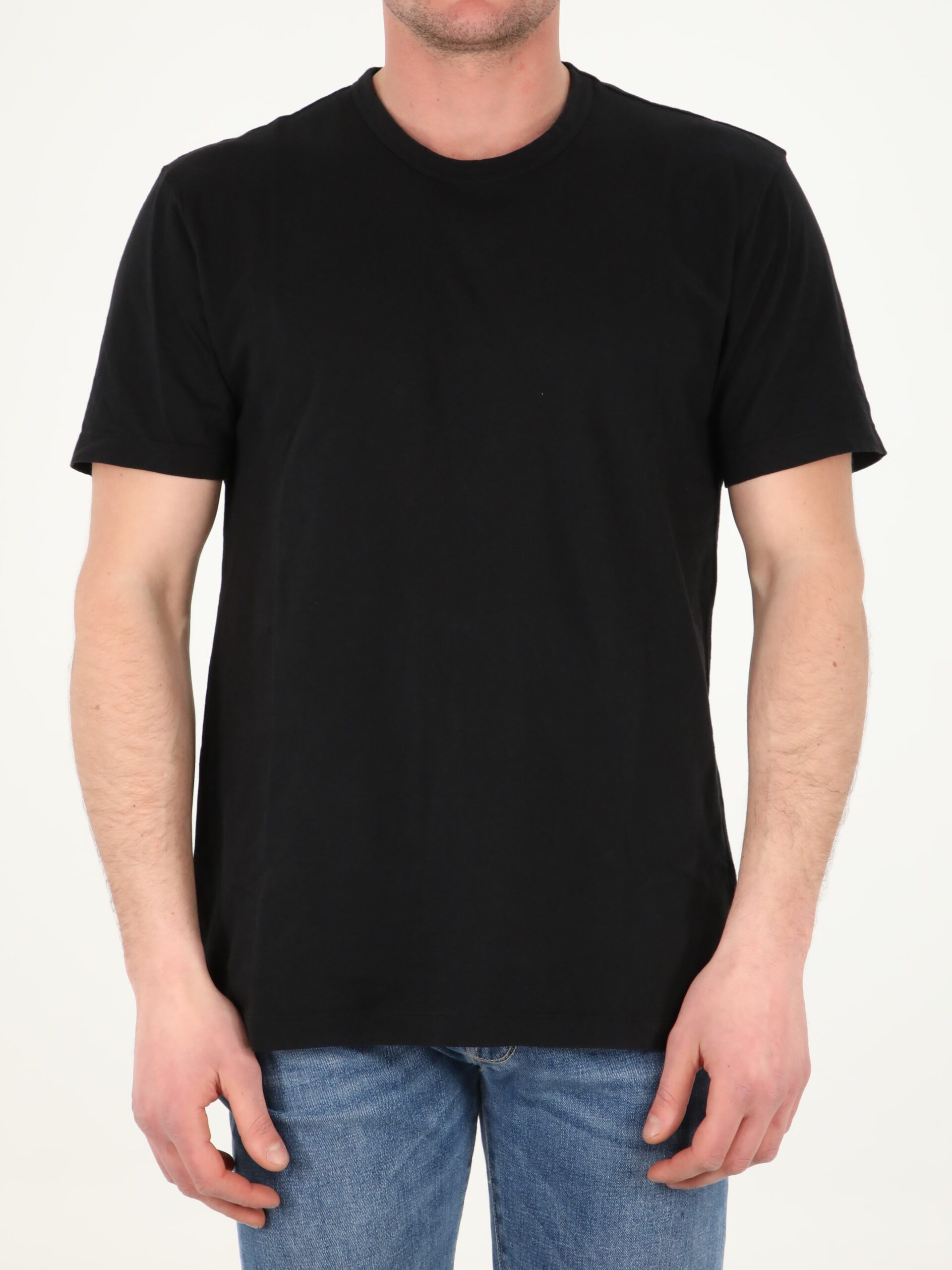 Black combed cotton t-shirt. Features a ribbed crew neck, short sleeves. Regular fit.