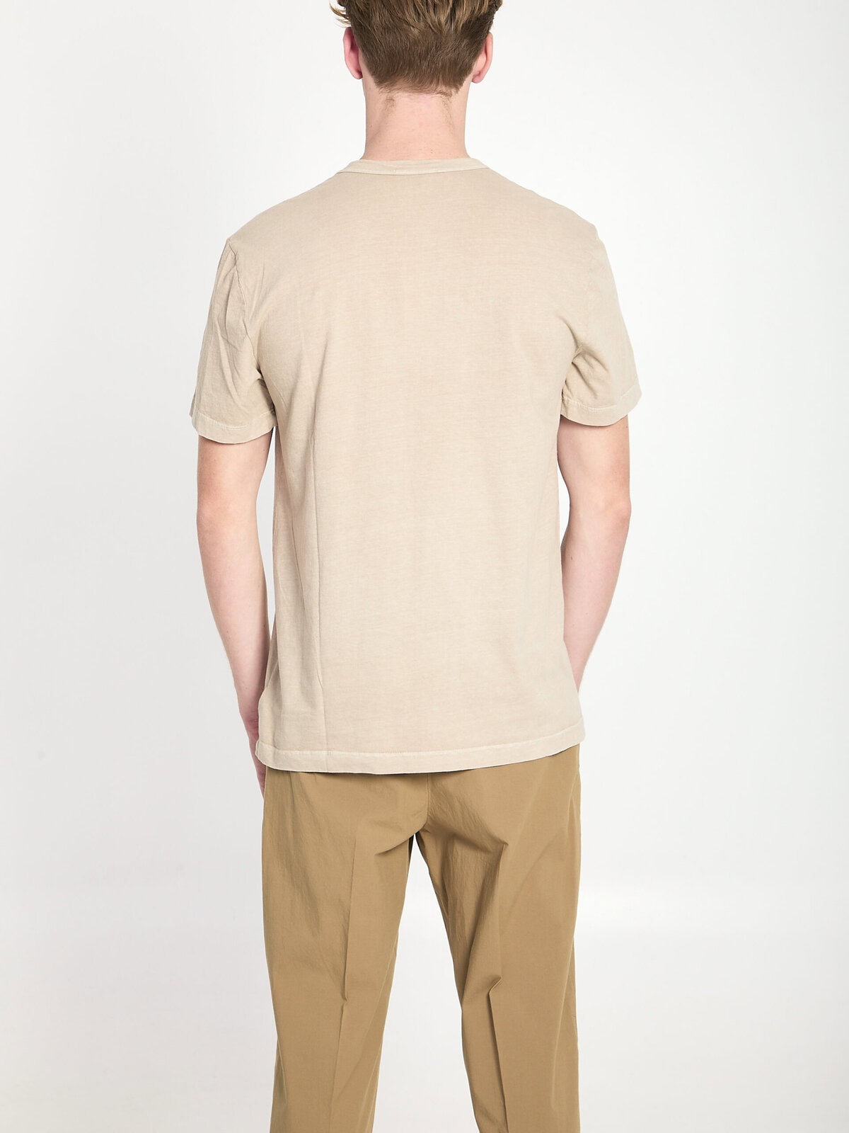 Khaki combed cotton t-shirt. Features a ribbed crew neck, short sleeves. Regular fit.