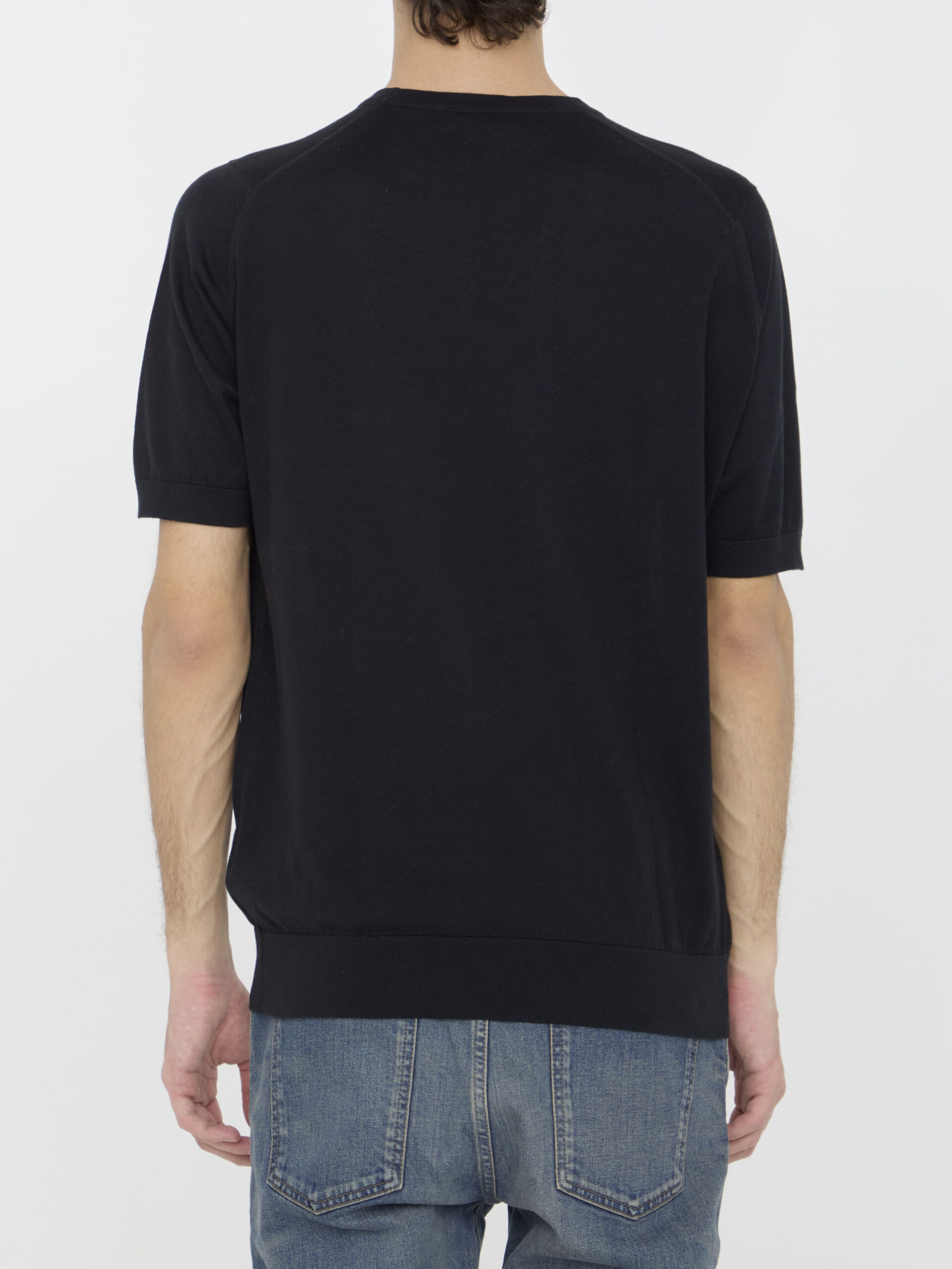 Short-sleeved crewneck Kempton t-shirt in soft black Sea Island cotton. Ribbed collar, cuffs and hem. Regular fit.