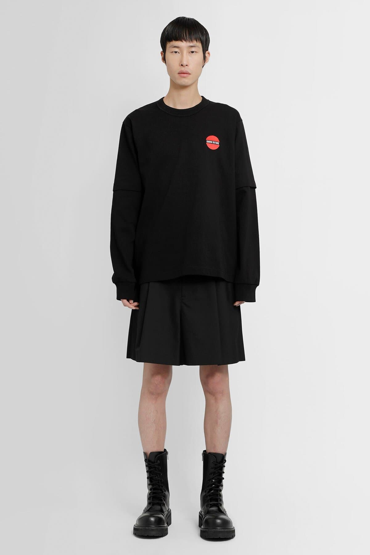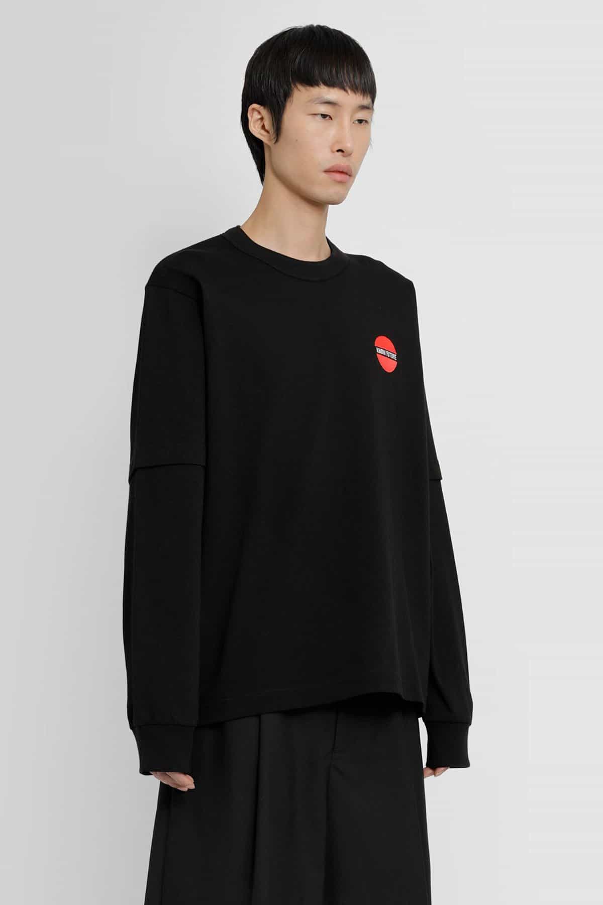 Nero Round neck Front chest ”know future” embroidery Long and short layered sleeves Ribbed cuffs Back embroidered logo