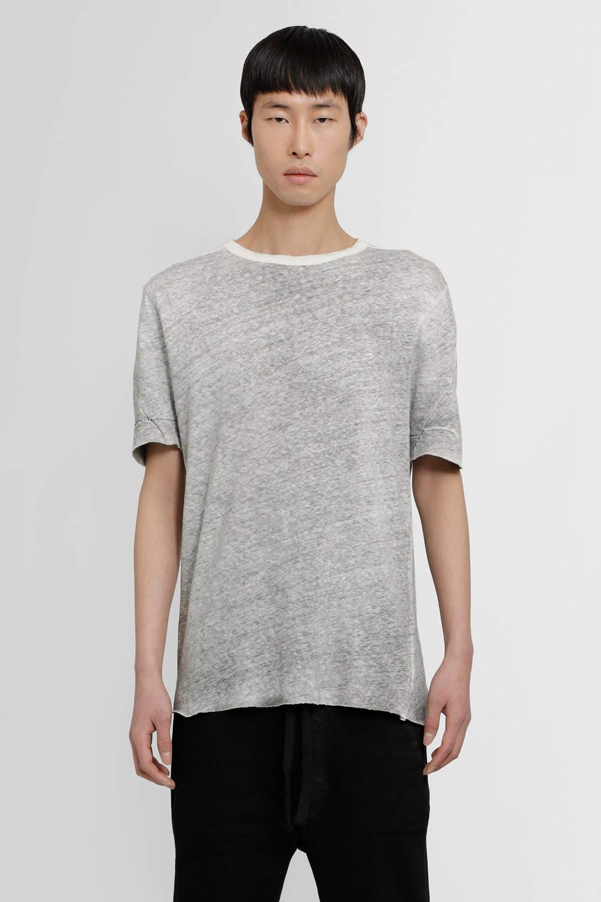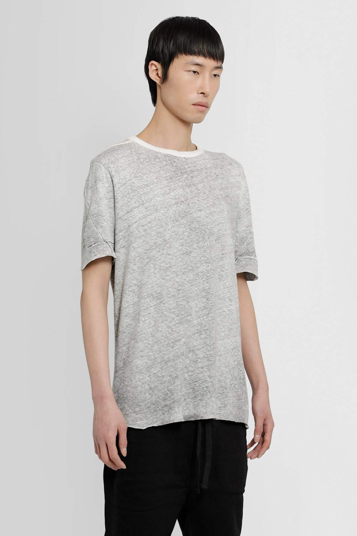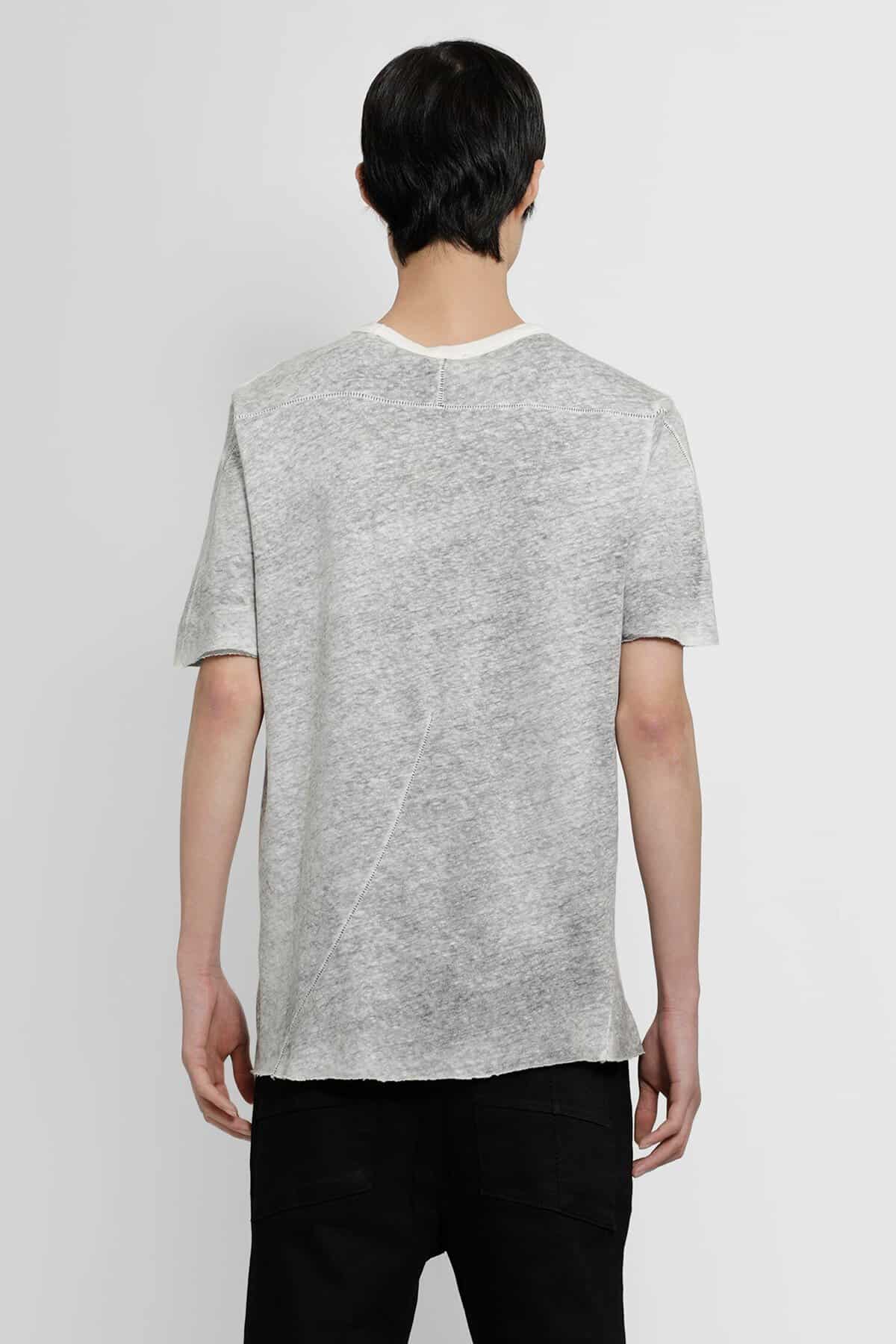 Grigio Round neck Dropped shoulders Short sleeves Back signature scar stitching Raw-edge hem and cuffs