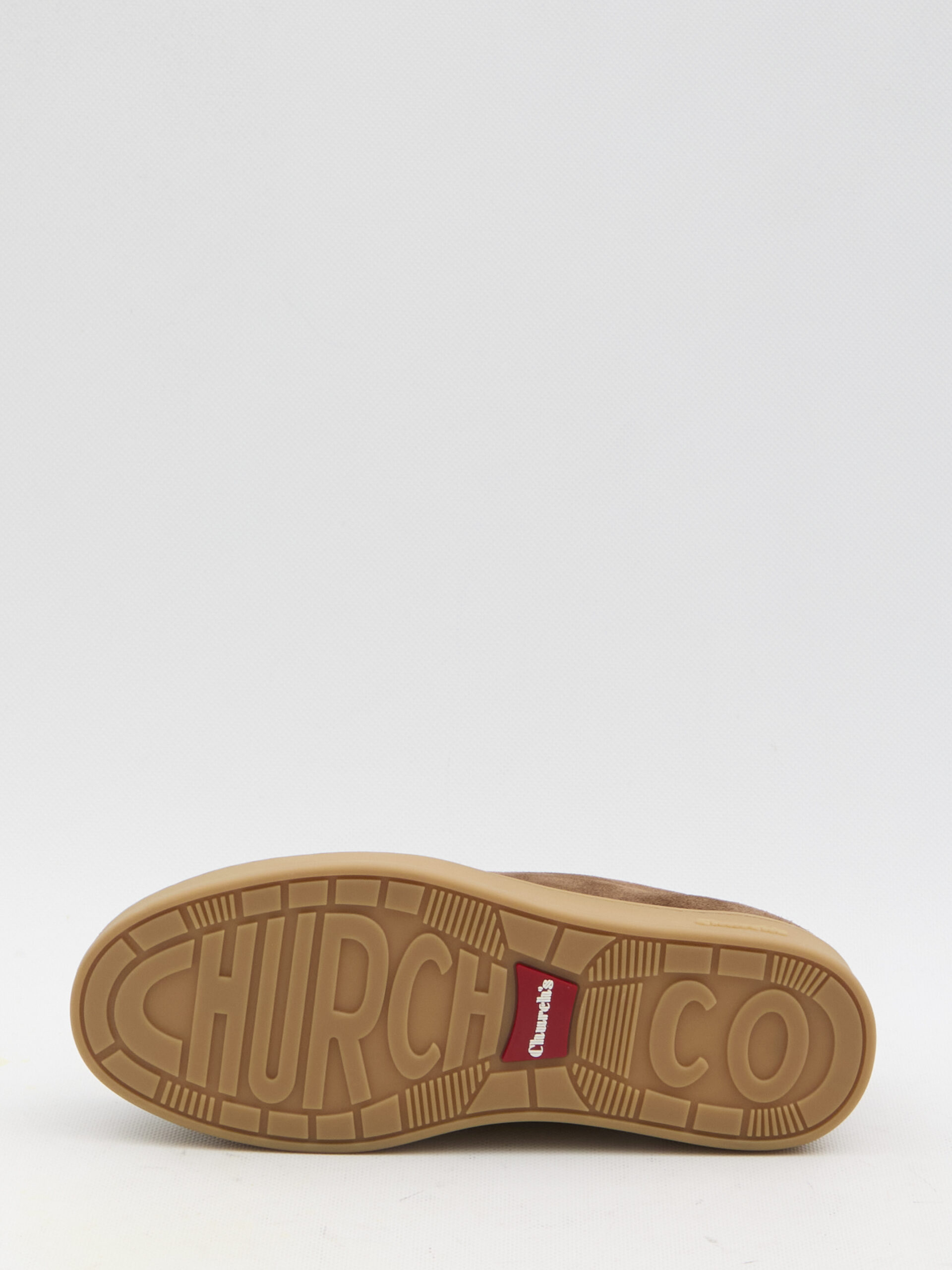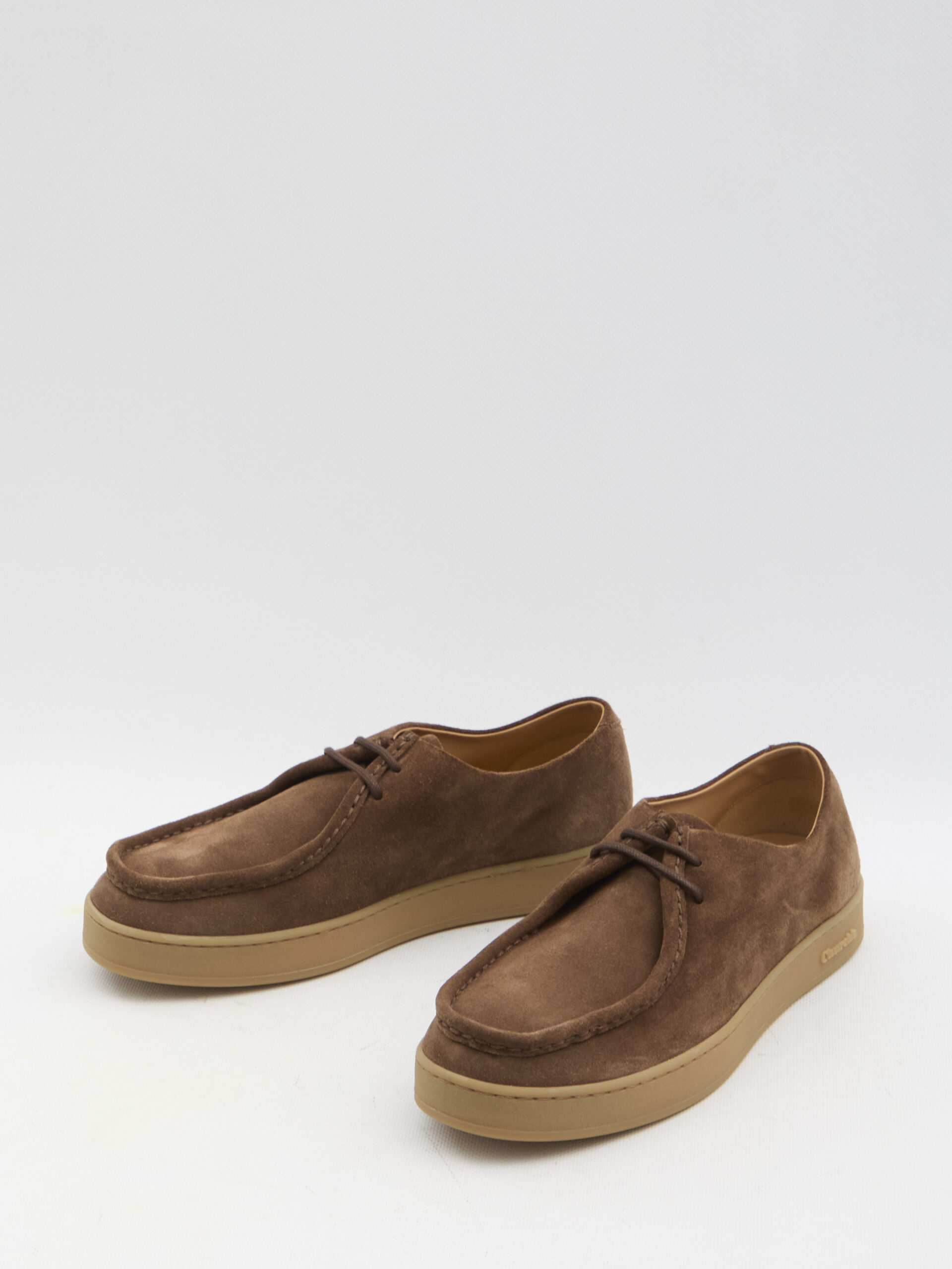 Nocton lace-up shoes in brown suede with handmade apron-toe seam and hand-painted seam edge. They feature detachable padded insole, padded leather lining and lightweight and flexible rubber sole with Church’s & Co. logo. Dust bag included. Any leather imperfections are not to be considered manufacturing defects, but a peculiarity of the material.