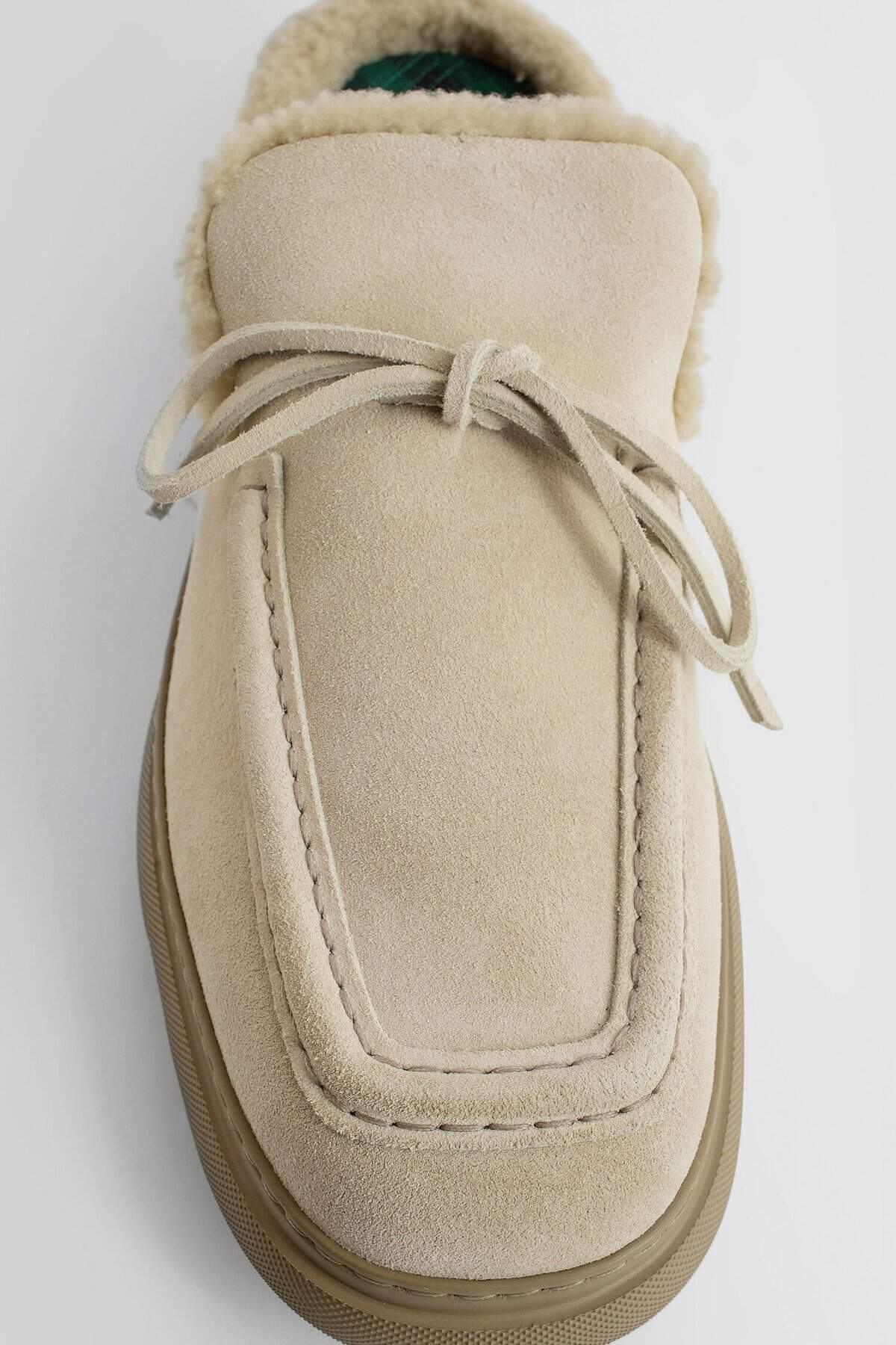 Clay Suede Lace closure Equestrian knight rubber tag Open back Shearling lining Eva sole