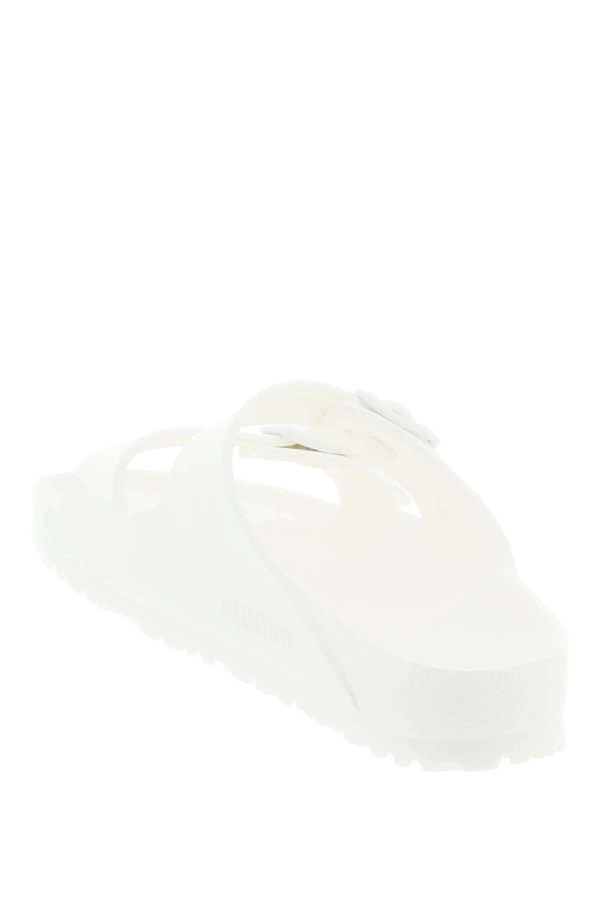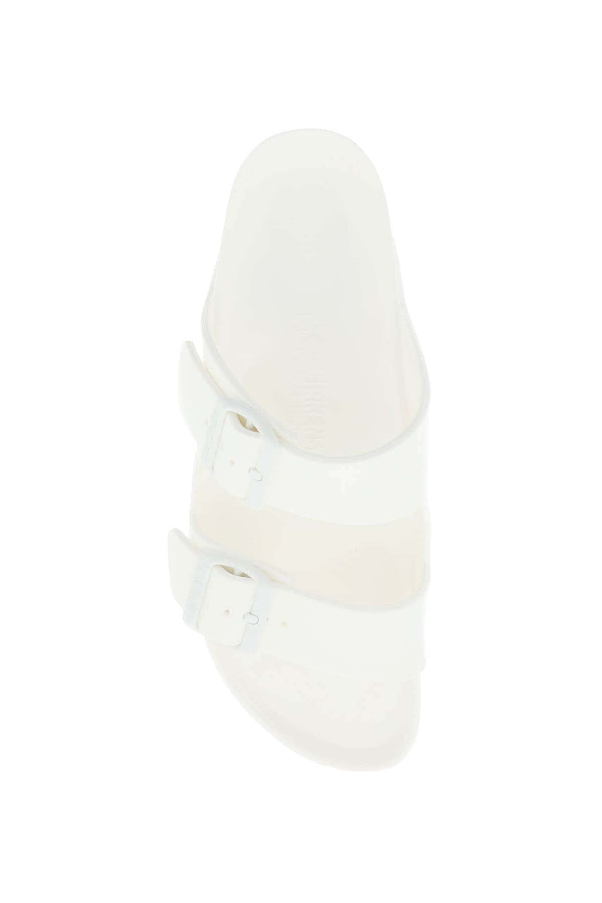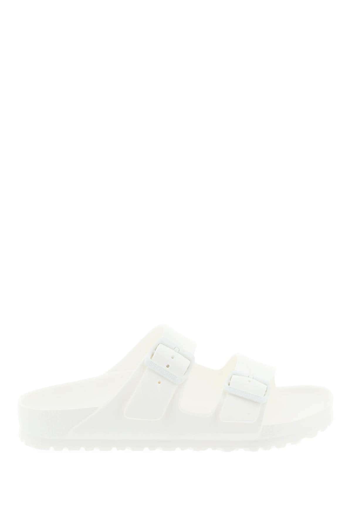 Birkenstock Arizona slides entirely crafted in EVA with moulded insole and double adjustable strap with tone-on-tone plastic buckle with debossed logo. Narrow fit.