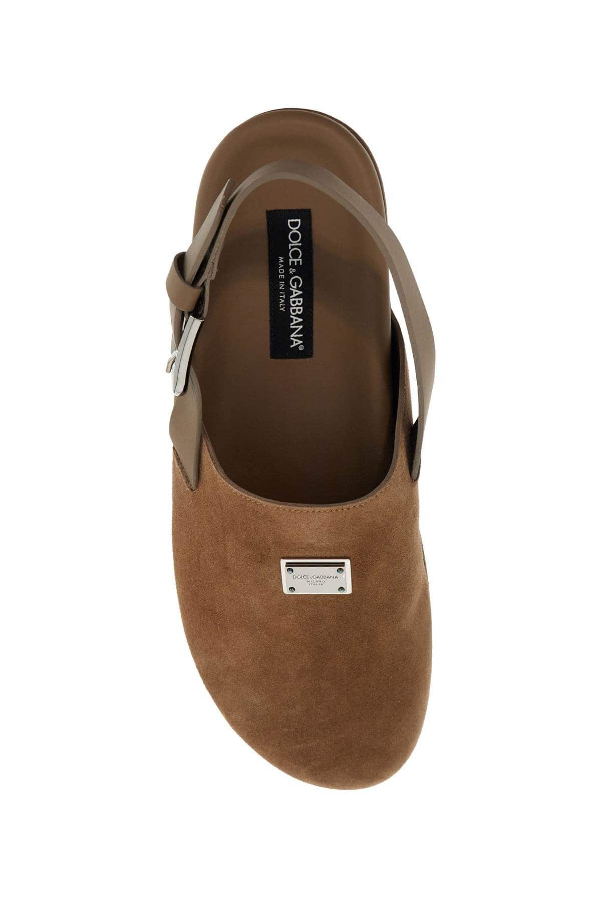Dolce & Gabbana Suede Leather Clogs With Logo Plate