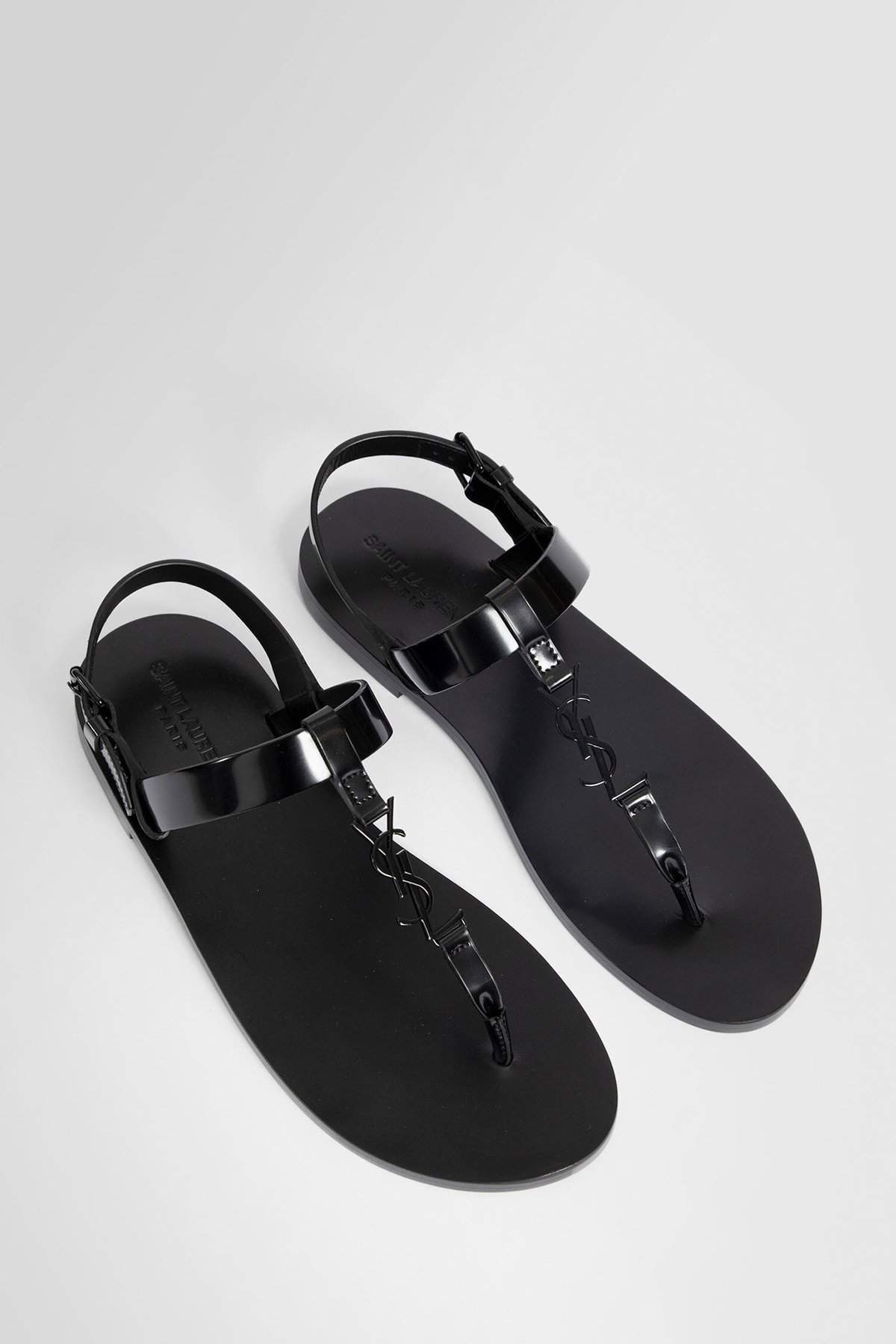Black Buckled slingback strap T-strap with enamelled cassandre plaque Leather sole Block heel