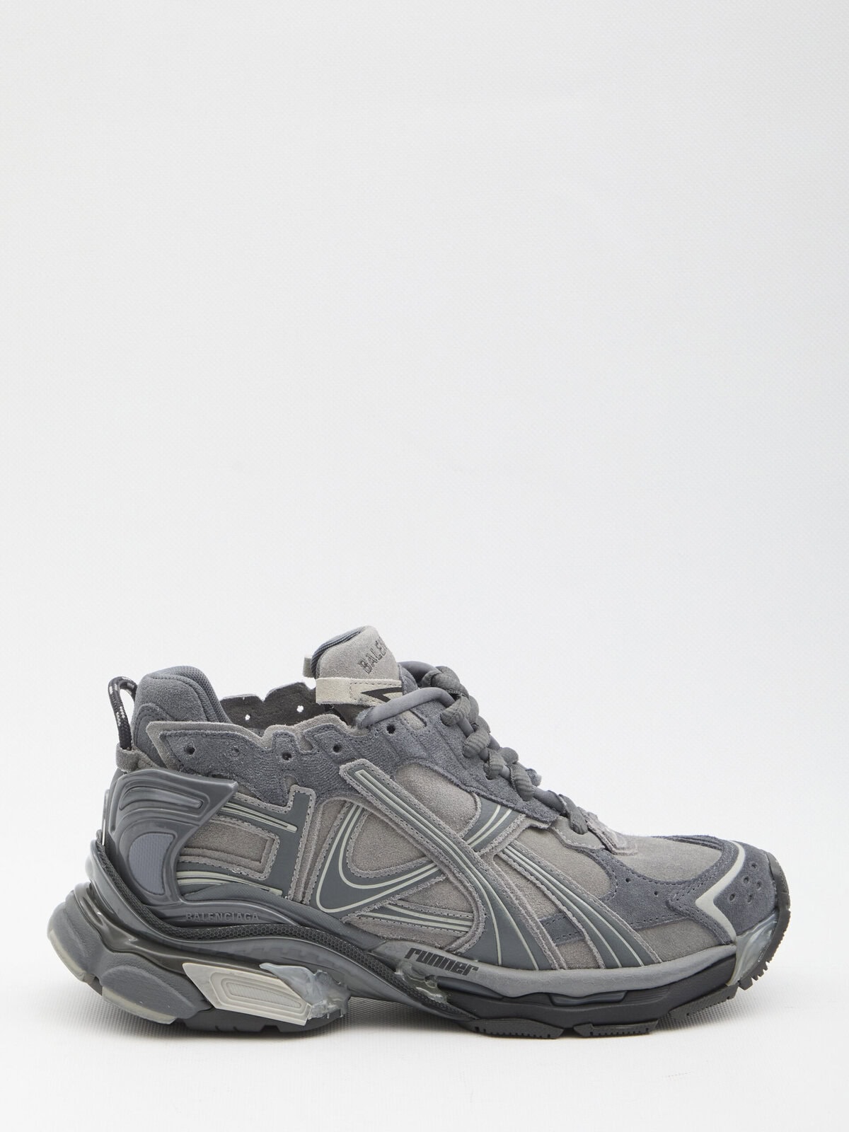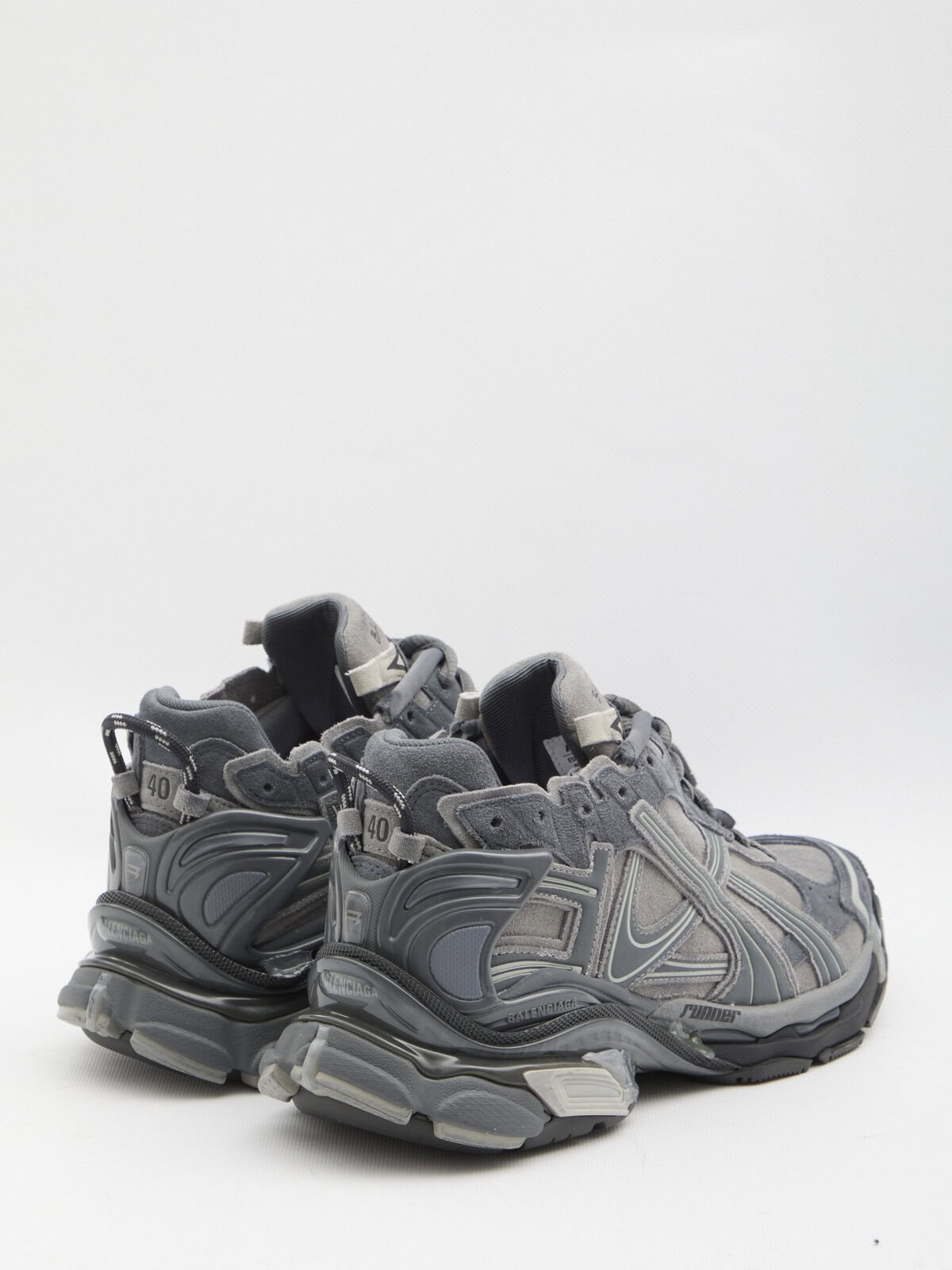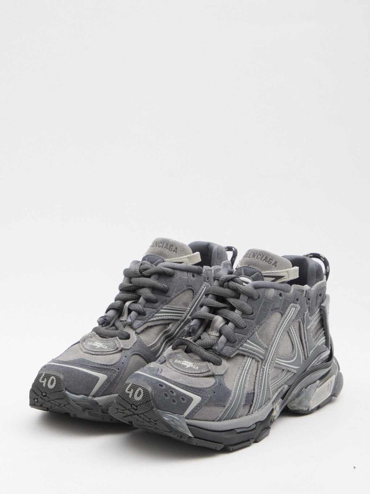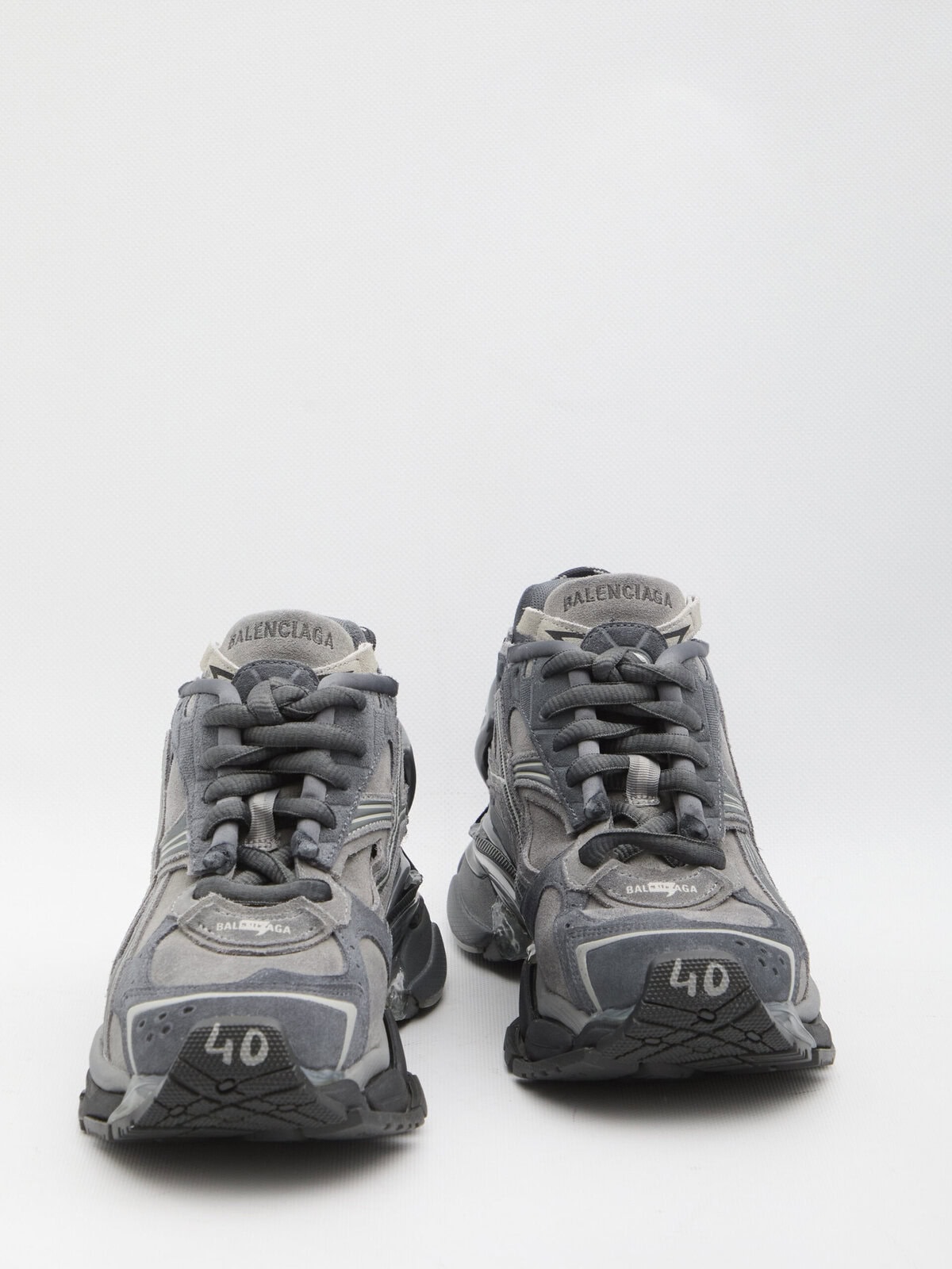 Sneakers in grey suede Vachetta leather, polyurethane and polyester with a worn-out effect. Feature Runner logo on the side, Balenciaga logo embroidered on the tongue and heel, heel pull tab, and lace-up closure. Dustbag included.