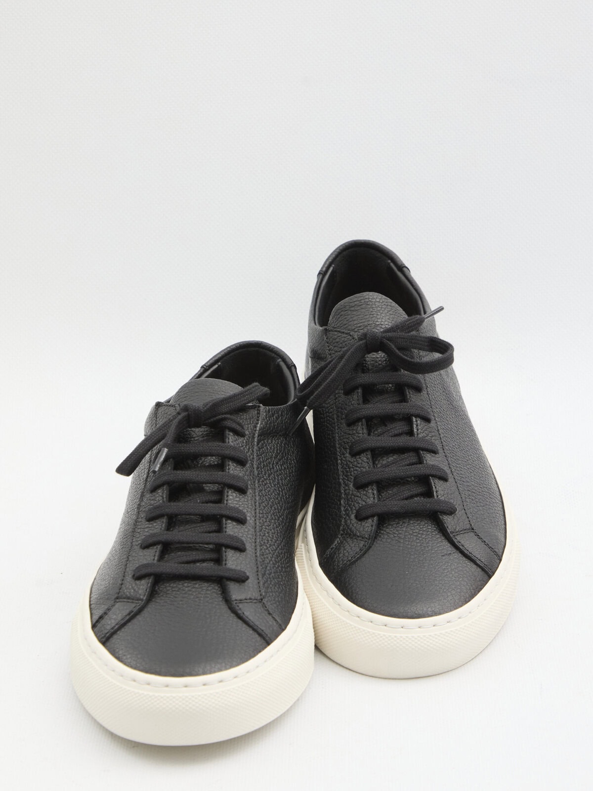 Premium hammered black nappa leather sneakers. Featuring a rounded toe, lace-up closure, leather interior, and rubber sole. Dustbag and spare laces included. Any imperfections in the leather are not to be considered manufacturing defects, but a characteristic of the material.