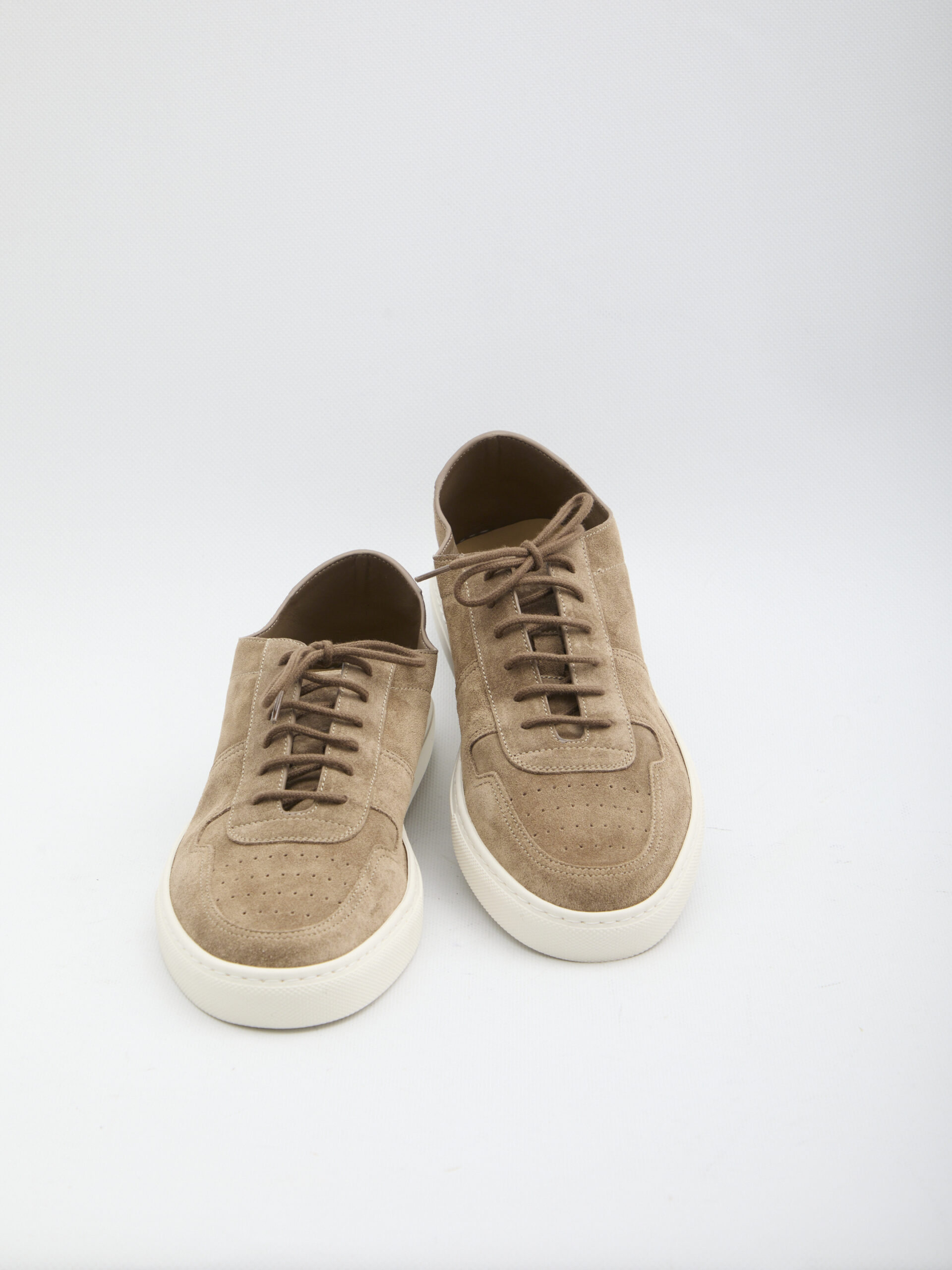 Taupe grey suede sneakers. Featuring a rounded perforated toe, thin lace-up closure, smooth leather heel tab, leather interior, and rubber sole. Dustbag and spare laces included. Any imperfections in the leather are not to be considered manufacturing defects, but a characteristic of the material.