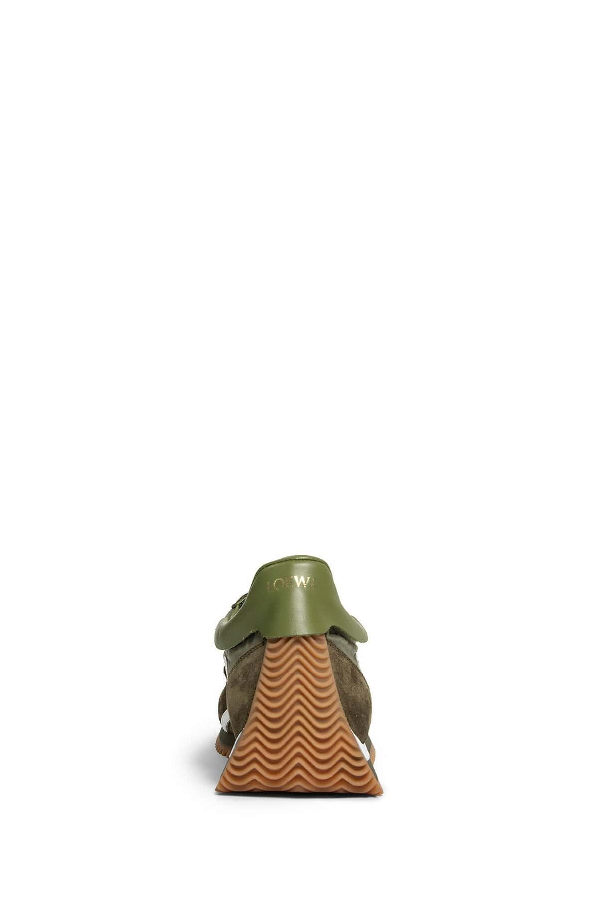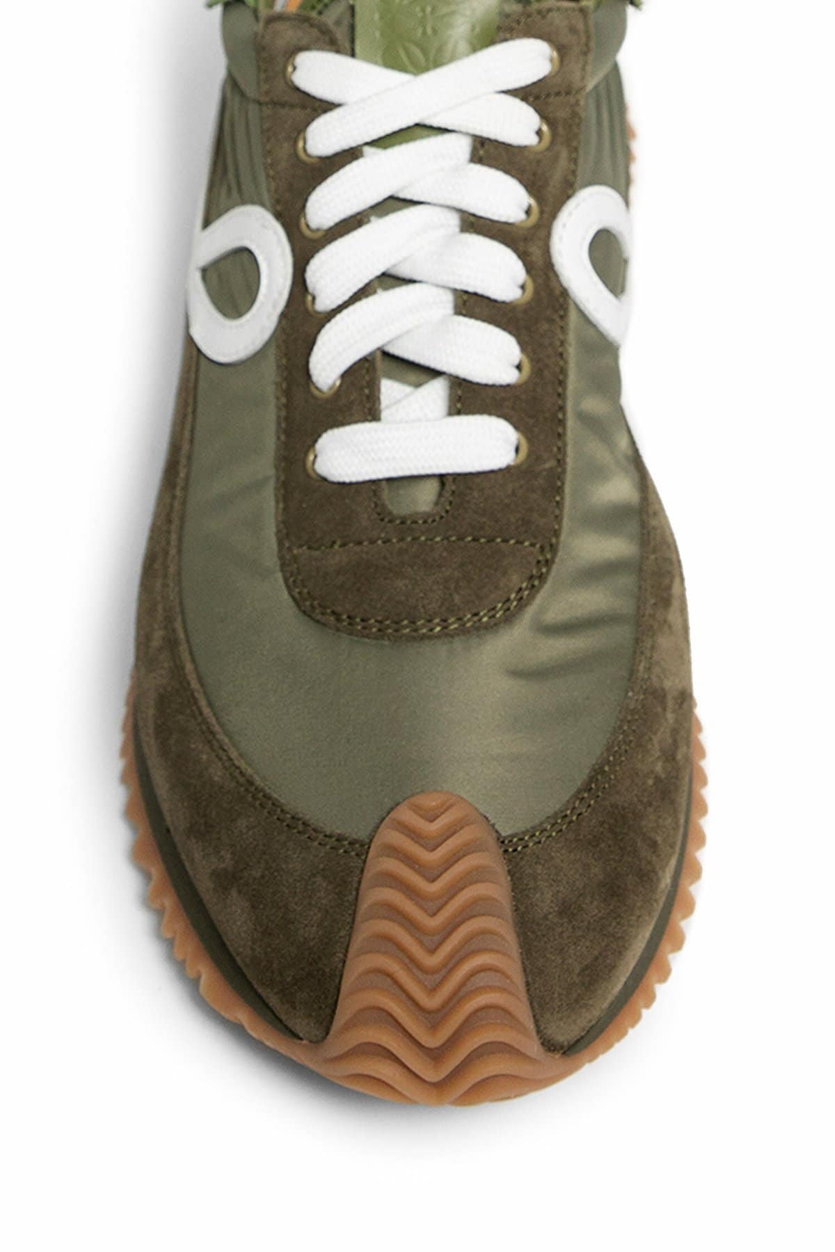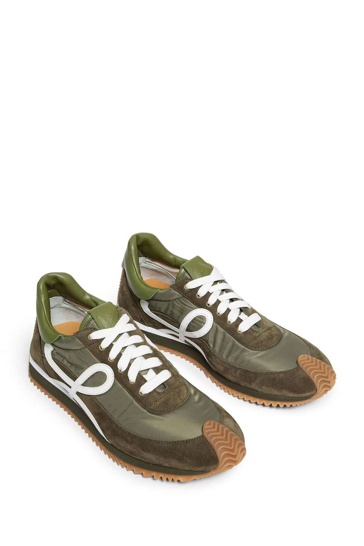 Olive Nylon and suede Lace closure Side l monogram Curved rubber sole
