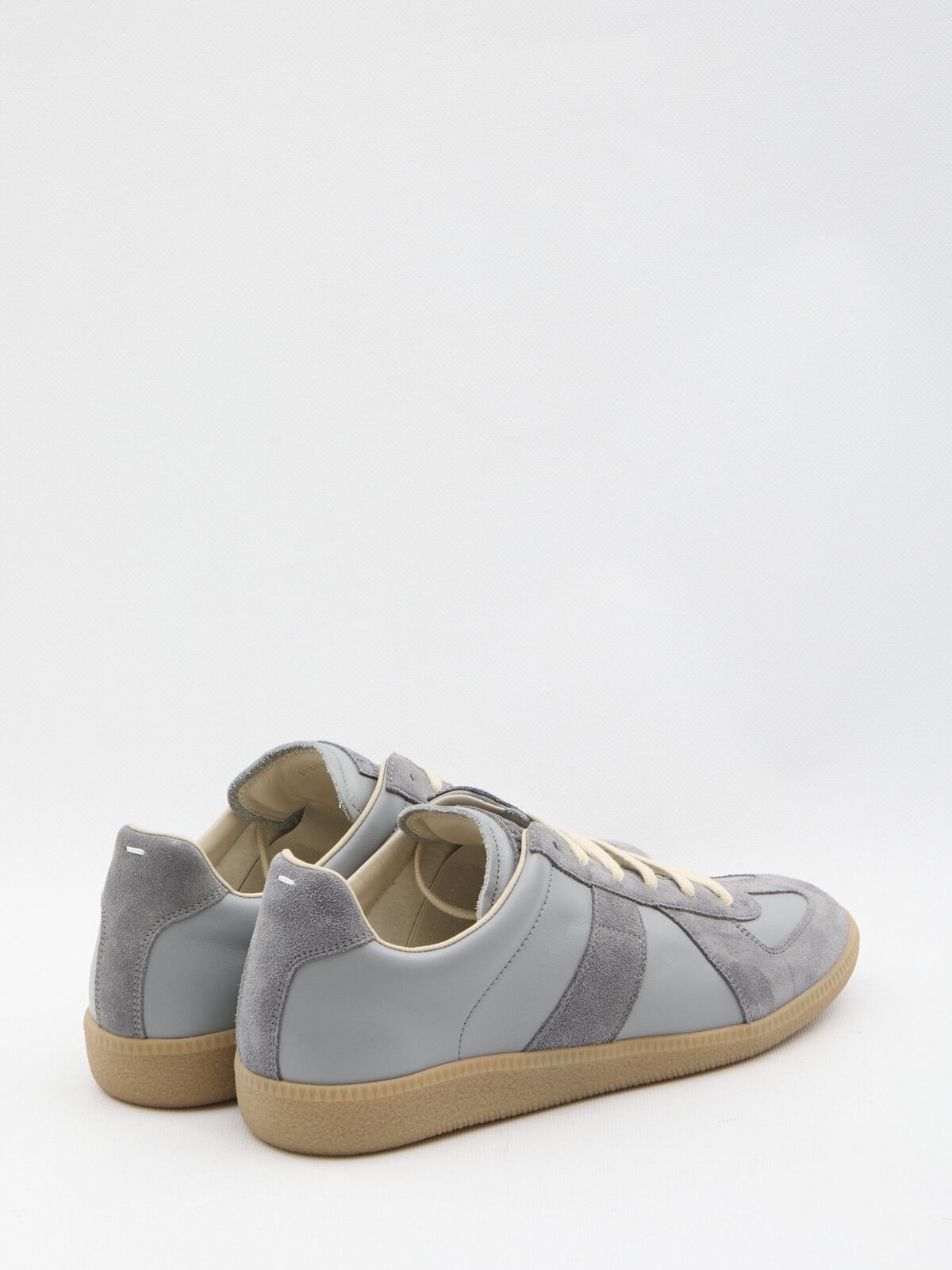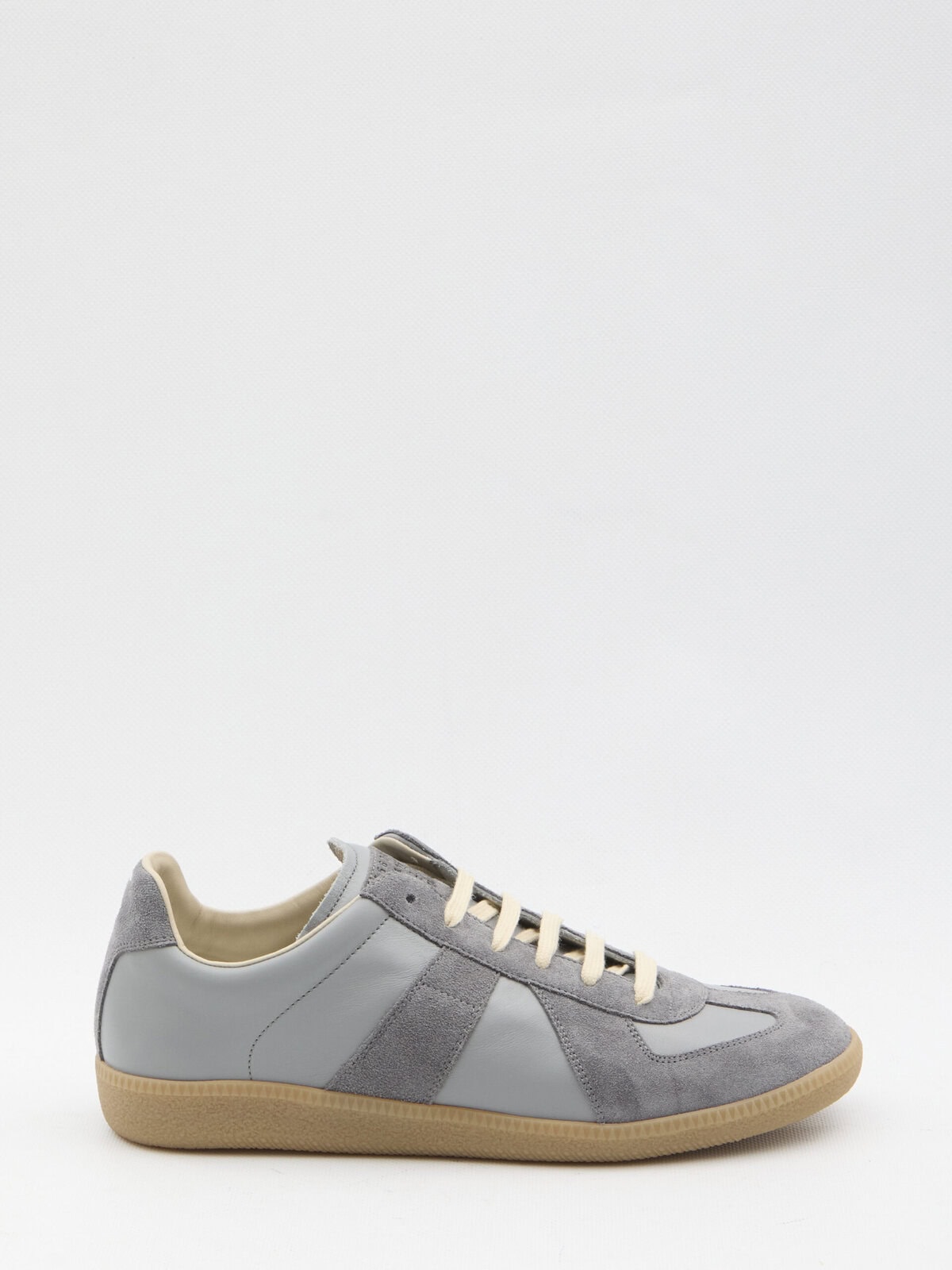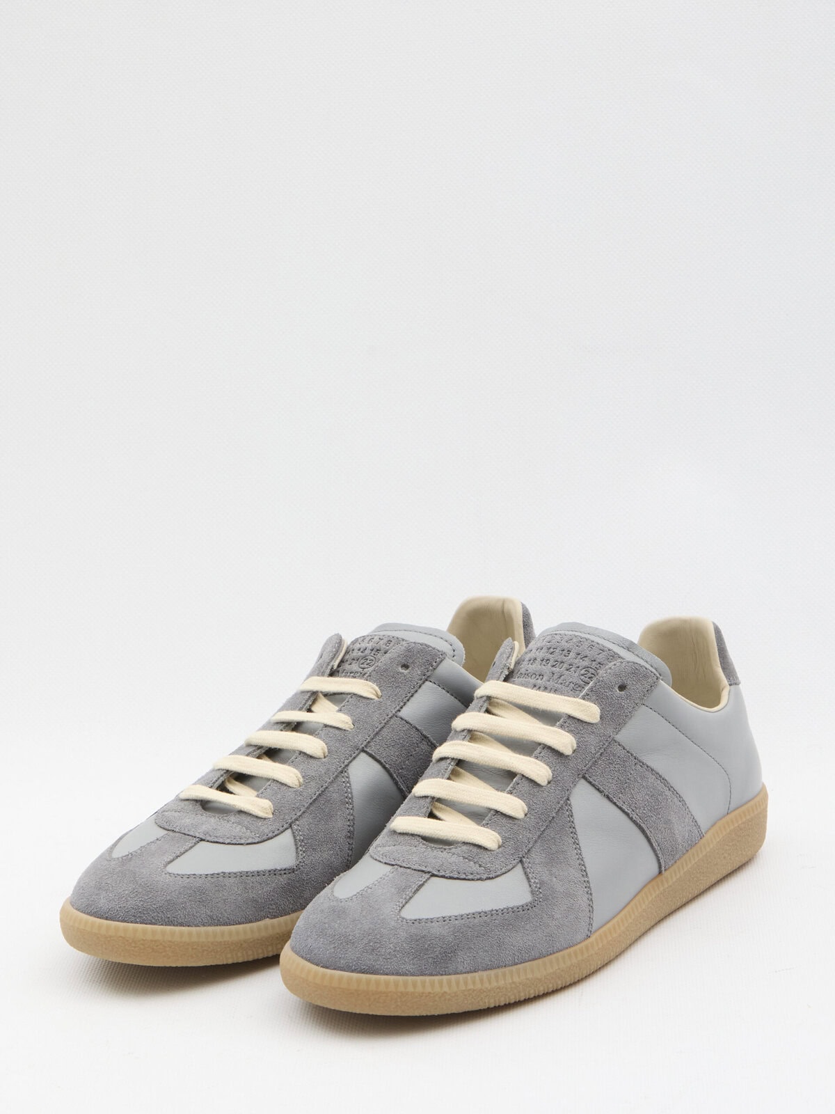 Replica sneakers in gray suede and smooth calf leather with beige rubber sole. They feature lace-up closure, round toe and branded tag on the insole. Seam detail on heel. Dust bag included. Any leather imperfections are not to be considered manufacturing defects, but a peculiarity of the material.