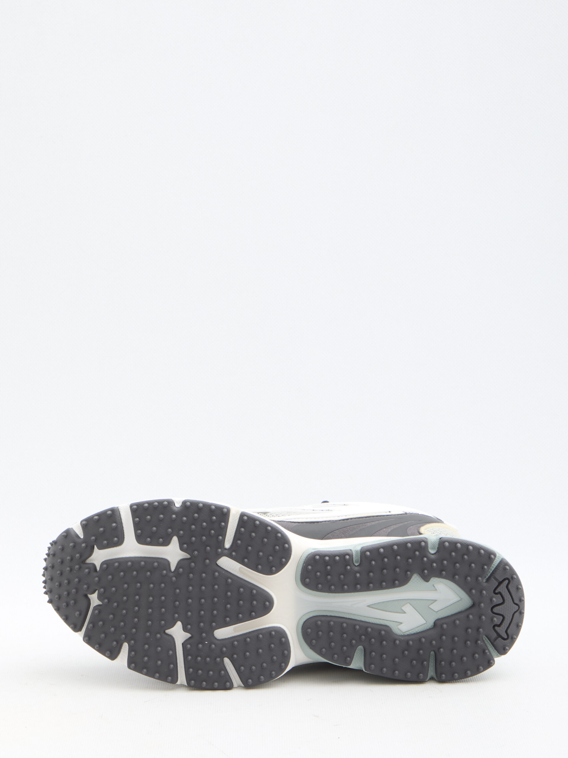 Be Right Back sneakers in grey mesh with rubber inserts. They feature lace-up closure, side Arrow appliqués, logo on tongue, detachable Zip Tie and rubber sole. Dust bag included.