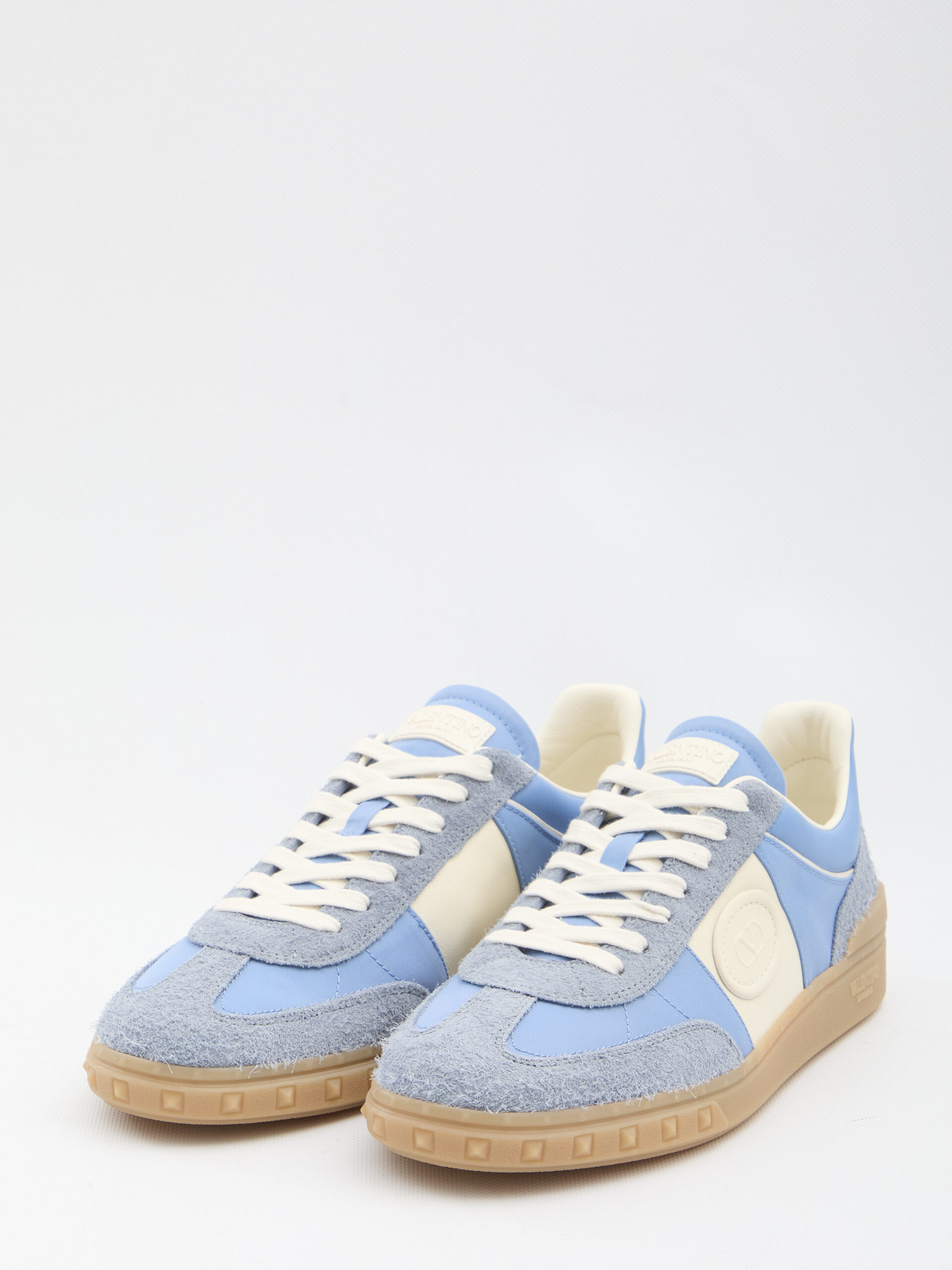 Light blue nubuck calf leather, suede, and nylon sneakers. Features suede inserts, round toe, lace-up closure, tongue with applied Valentino Garavani signature, and VLogo Signature on the side. Custom studded sole. Dust bag and extra laces included. Any natural imperfections in the leather are not considered manufacturing defects but a unique characteristic of the material.