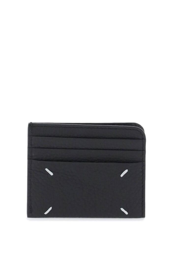 Maison Mragiela credit card holder made of grained leather with three slots on each side, a center slit pocket and iconic Four Stitches on the back.