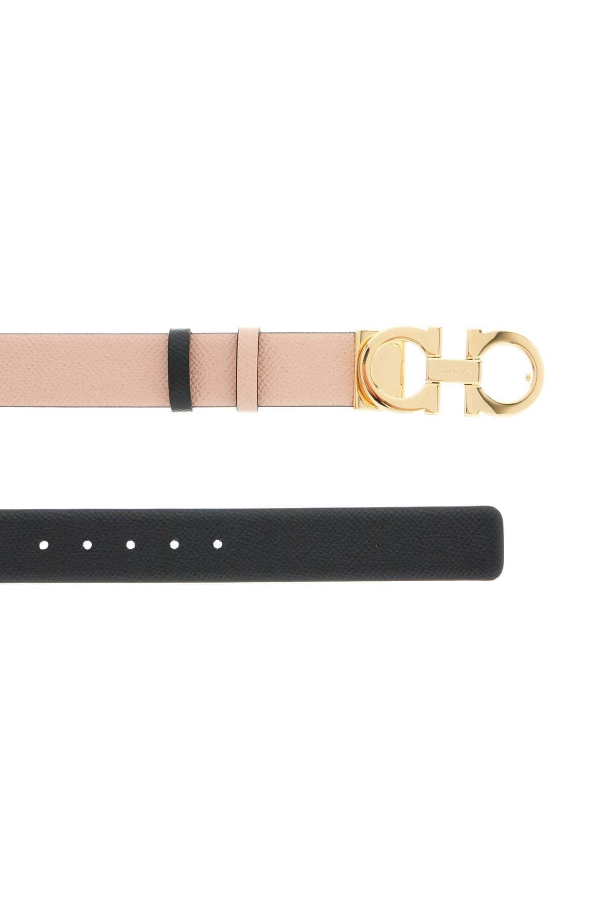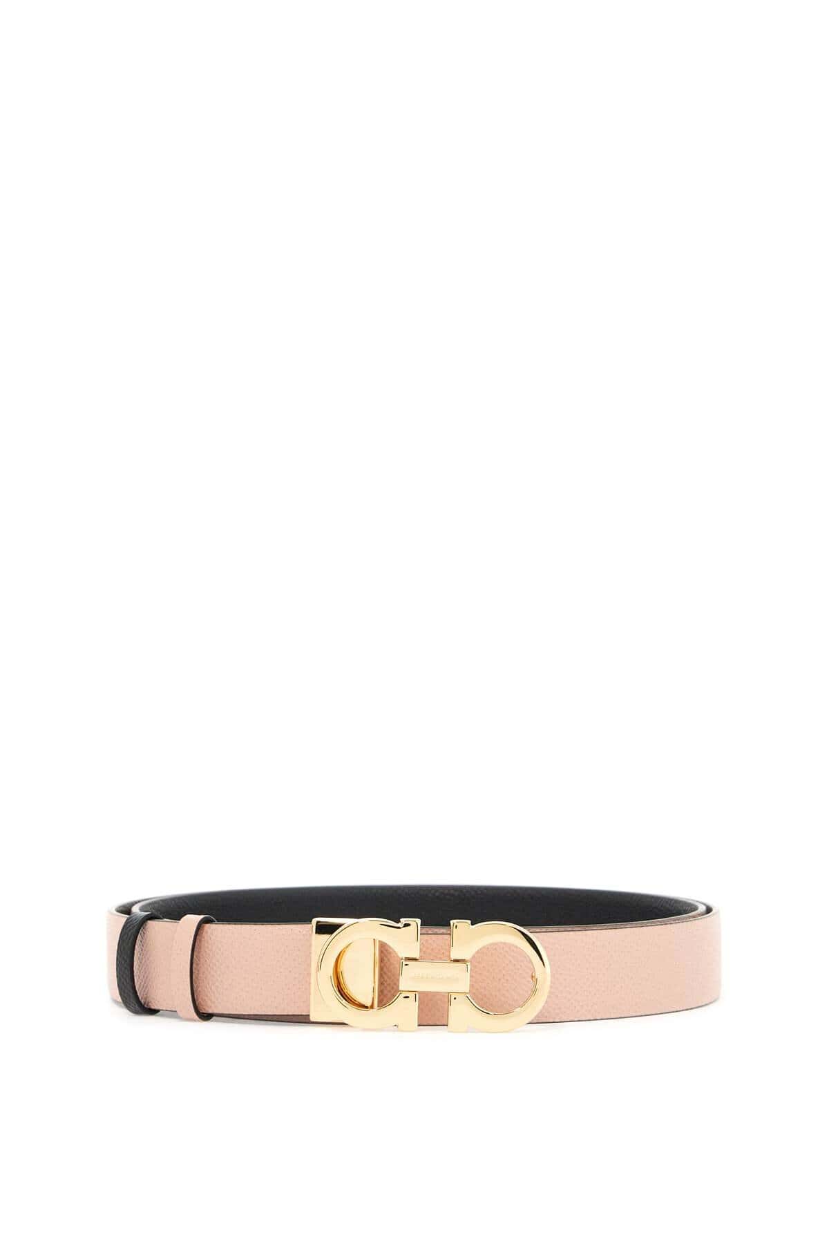 FERRAGAMO reversible belt made of hammered leather on both sides. The closure features the iconic Gancini buckle in gold-tone metal. The item shown in the photo corresponds to size 100.