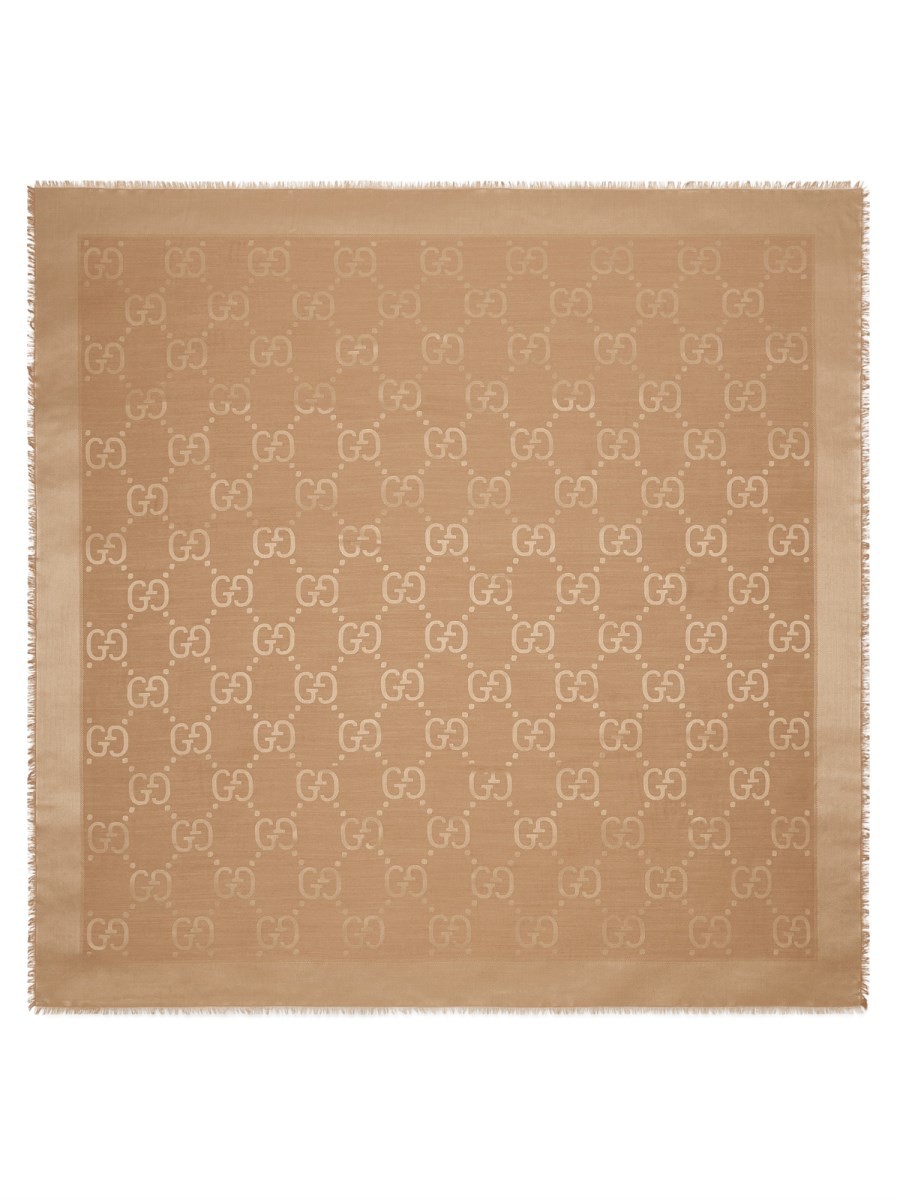 Gucci Wool And Silk Jacquard Shawl With Gg Pattern