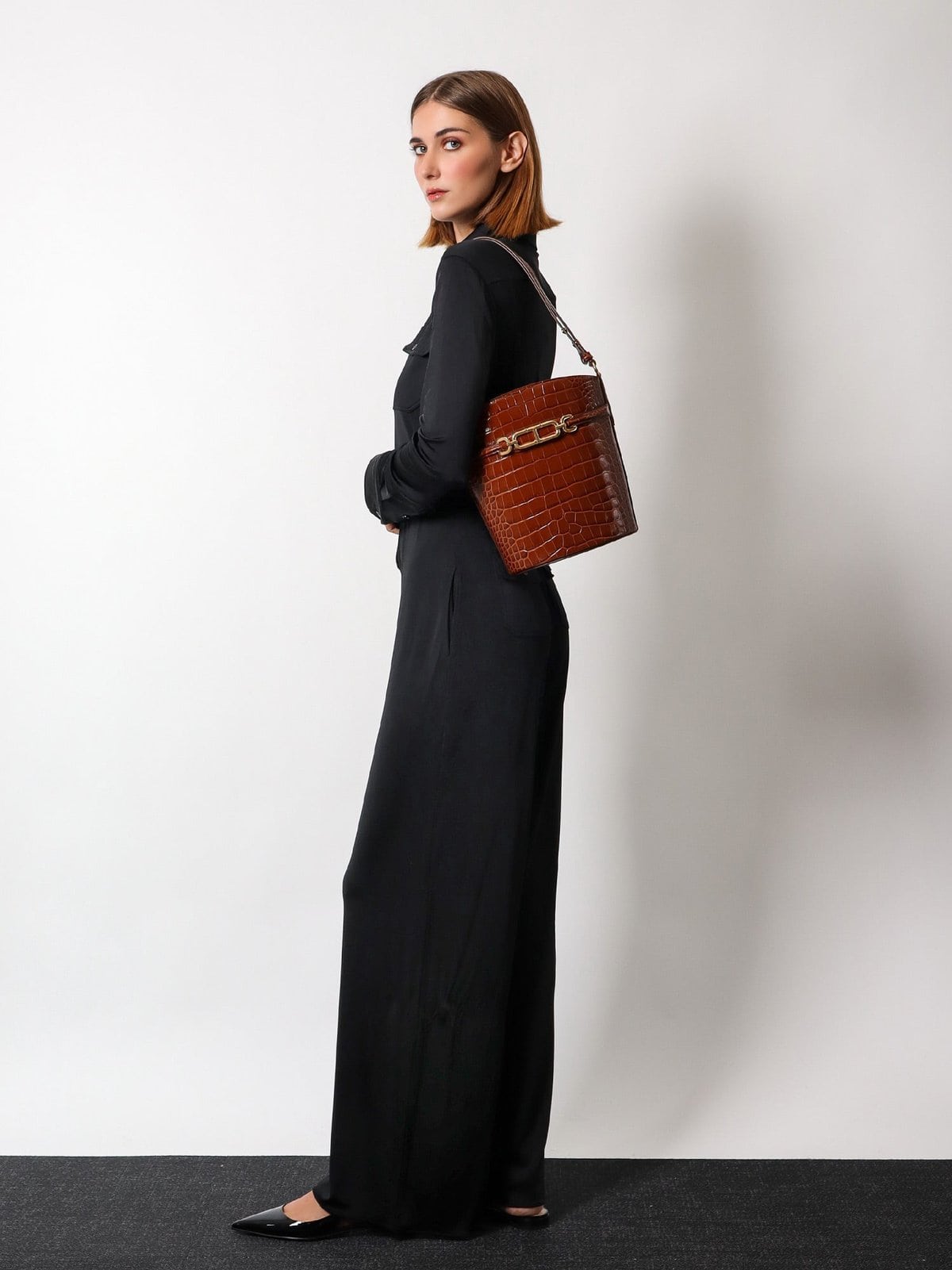Tom Ford Leather Bucket Bag With Whitney T Logo